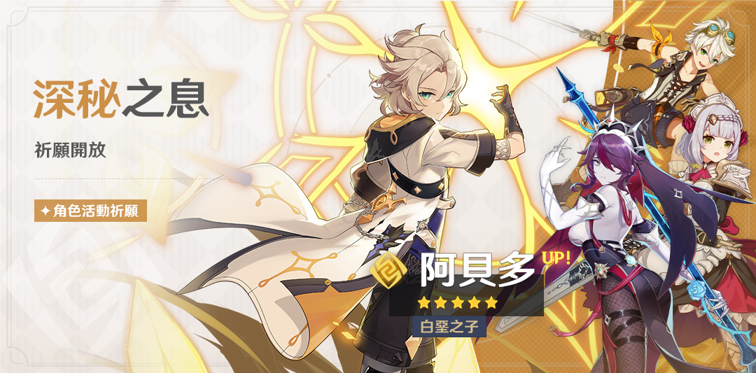 ●活動期間,限定五星角色「白堊之子·阿貝多(岩)」的祈願抽取機率將大幅提升!