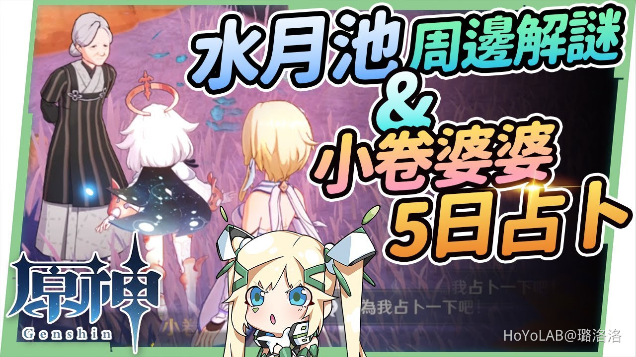 【原神 / Genshin】水月池周邊解謎 & 海淵靈草靈驗記🌊▸海祈島解謎,小卷婆婆占卜任務,「池中宅邸」副本、水月池華麗寶箱、繼電石解謎▹璐洛洛◃