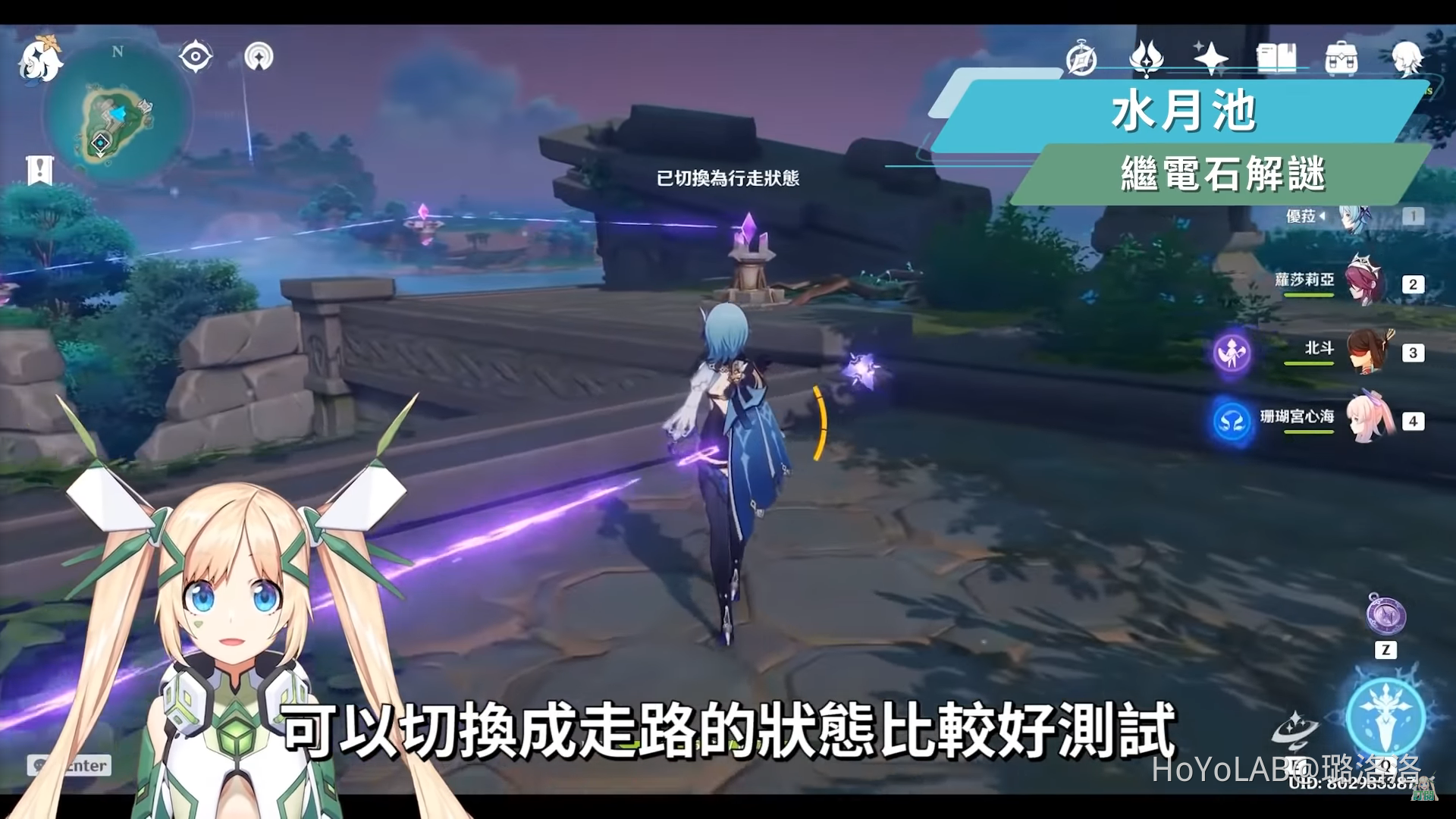 都轉到對的方向後解除雷元素石碑的封印,再切換雷元素角色讓四個雷元素石碑都發亮,解謎完成後水位會下降一部分。