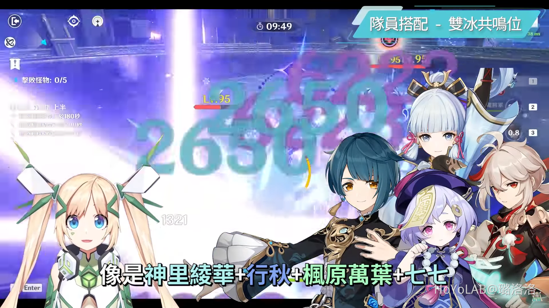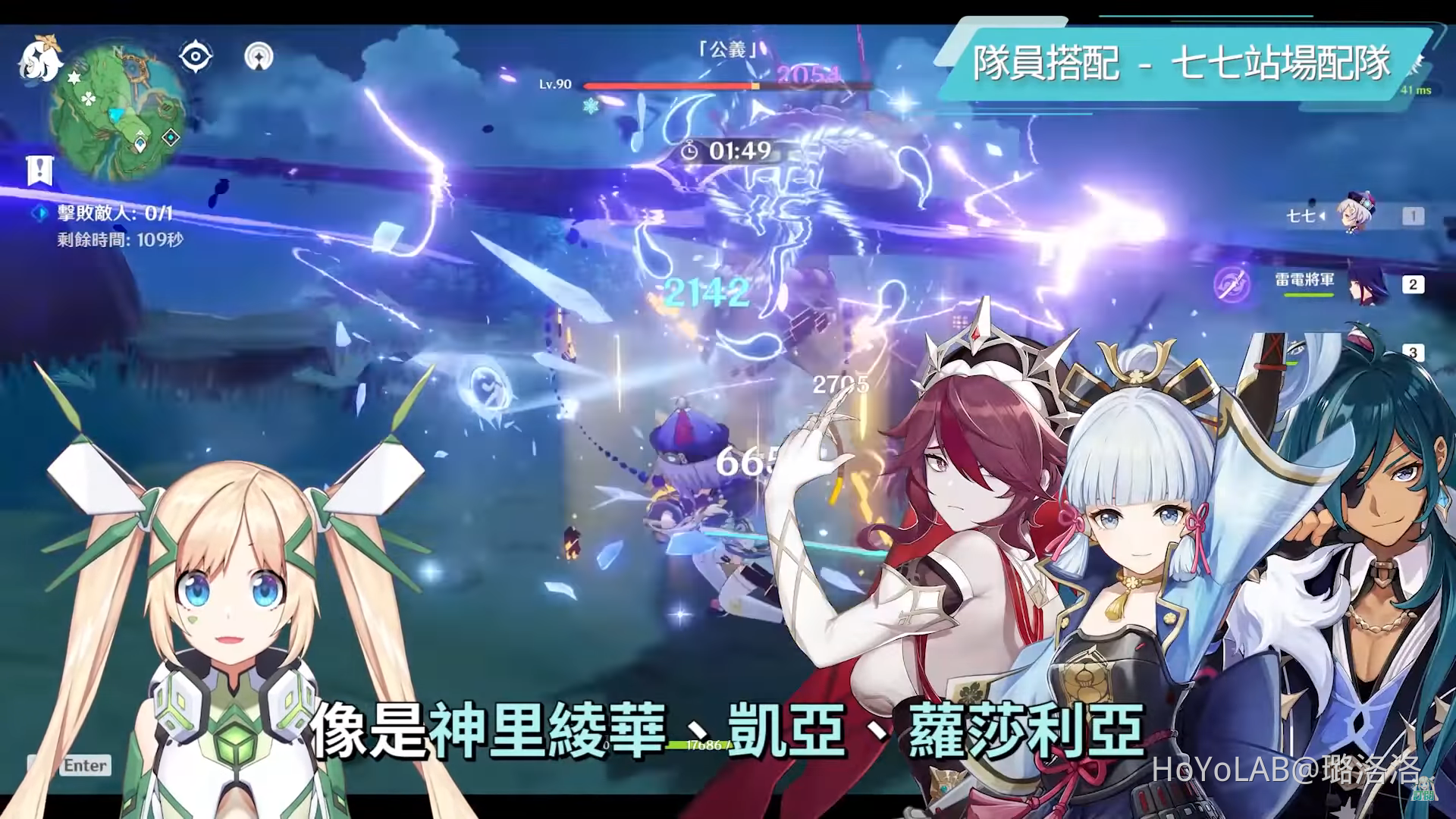 若是要讓七七擔任站場輸出來玩的話,就要確保隊員可以提供元素微粒的產出,並且也可以再從雙冰共鳴的考慮來放入另外的冰系角色,像是神里綾華、凱亞、蘿莎利亞。