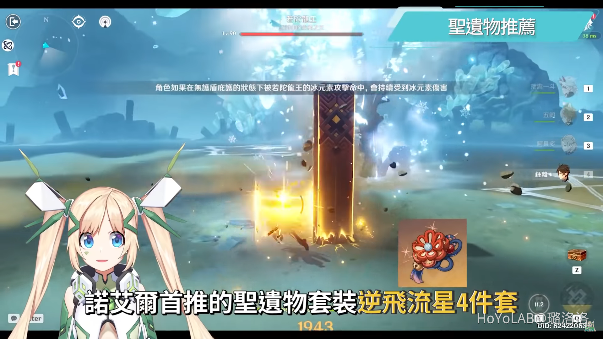 其次可以選擇的是2.3版本前,諾艾爾首推的聖遺物套裝逆飛流星4件套,提供35%的護盾強效和提升40%的普攻和重擊傷害,逆飛和華館套若差不多面板的情況下大約差距10%,因此在聖遺物4件套比較難湊的情況下可以先暫穿先前有刷好的逆飛4件套,而若是之前都沒刷,就直衝華館雞排4件套。