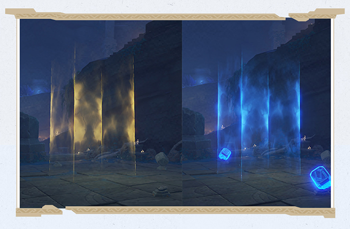 在淵下宮遇到的空氣扭曲現象,通稱「陽炎之幻」。隨著「晝夜」的不同,這種幻象會散去或者發生。