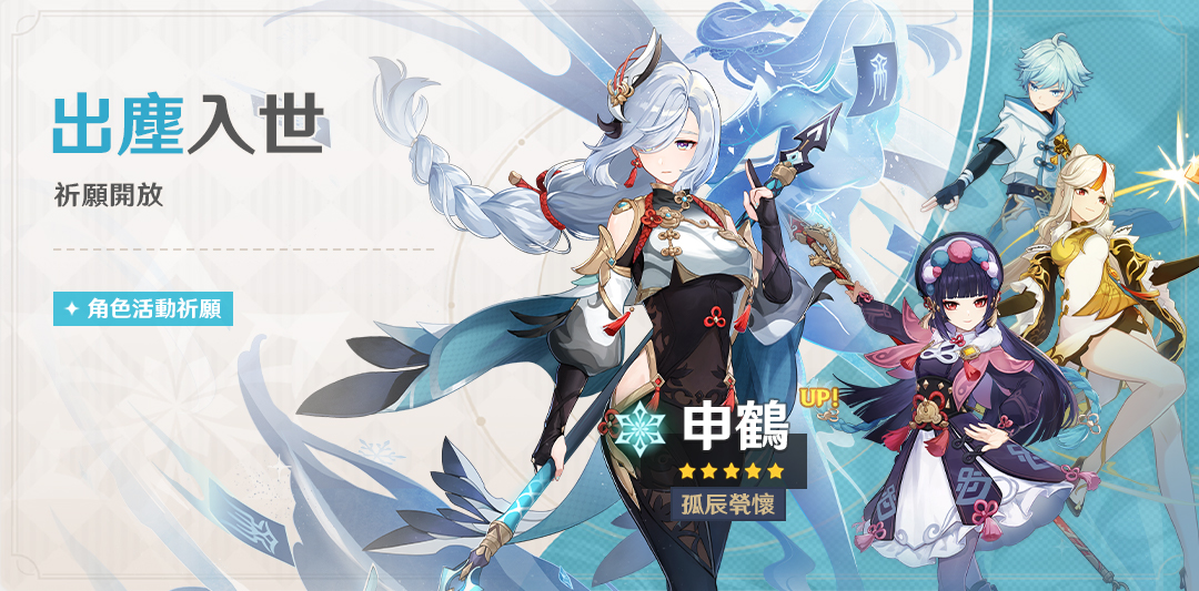 ●活動期間,限定五星角色「孤辰煢懷·申鶴(冰)」的祈願抽取機率將大幅提升!