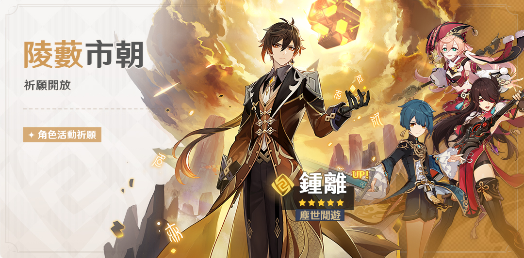 ●活動期間,限定五星角色「塵世閒遊·鍾離(岩)」的祈願抽取機率將大幅提升!