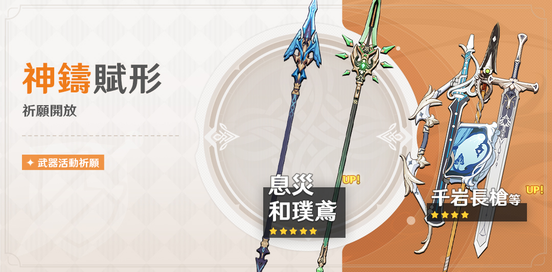 ●活動期間,限定五星武器「長柄武器·息災」、五星武器「長柄武器·和璞鳶」的祈願抽取機率將大幅提升!
