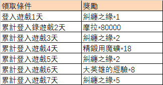 活動期間,累計登入七天即可獲得糾纏之緣*10等獎勵!