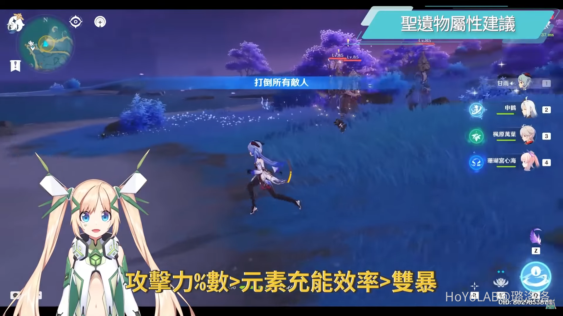 聖遺物屬性的選擇,最簡單也通用的就是主屬性全選攻擊力%數為主的時之砂、空之杯和禮之冠,而若是想打一點傷害也可以考慮換成冰傷杯,主屬性不用選元素充能的原因是申鶴的大招能量雖然要80點,但是可以透過隊友和自身產生的元素微粒來回復,因此讓輔助或傷害效果提升才是最重要的,其次副屬性的部分可以選擇攻擊力%數>元素充能效率>雙暴。畢業面板就是讓攻擊力越高越好,基本3000以上,也有大佬可以堆到5000的,再來考慮元素充能效率盡量能夠越接近200%。