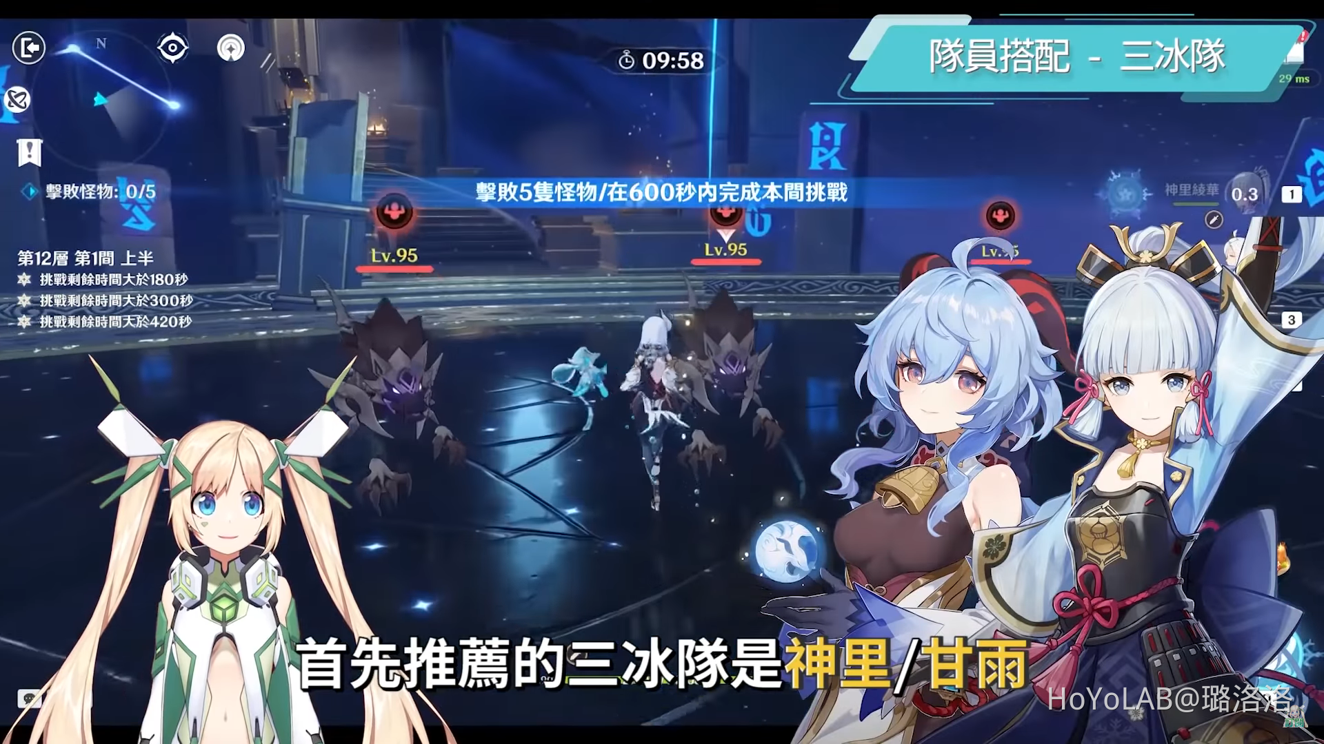 首先推薦的三冰隊是神里/甘雨+申鶴+蘿莎莉亞/迪奧娜+心海/莫娜/萬葉,若是使用神里做為主C的話,最好是搭配滿命申鶴,能夠吃到最多的冰翎效果,而若是以甘雨作為主C的話,則可以把蘿莎莉亞換成迪奧娜,心海換成莫娜,而莫娜若是要替補奶**位置也可以拿試作金珀,又或是第四個位置換成萬葉吃40%的減抗,缺奶*再換成迪奧娜。