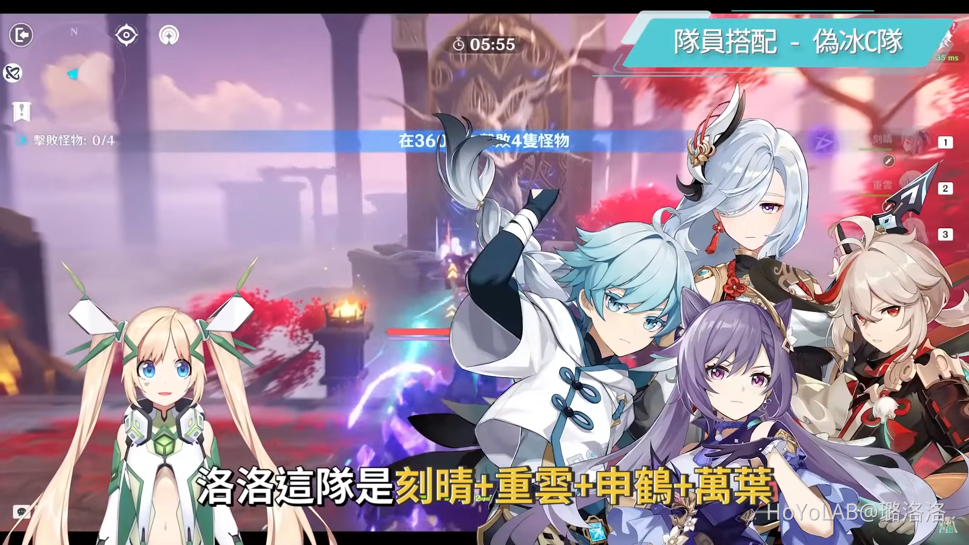這隊則是以普攻為主的C位角*,**這隊是刻晴+重雲+申鶴+萬葉,只要讓刻晴換成冰套4件,透過重雲附魔轉成一種偽冰C的隊伍,如此一來就能吃到申鶴的冰元素傷害加成,只是這隊只是一種另類的組隊思路,不算是主流玩法,可以當作娛樂性質看看。