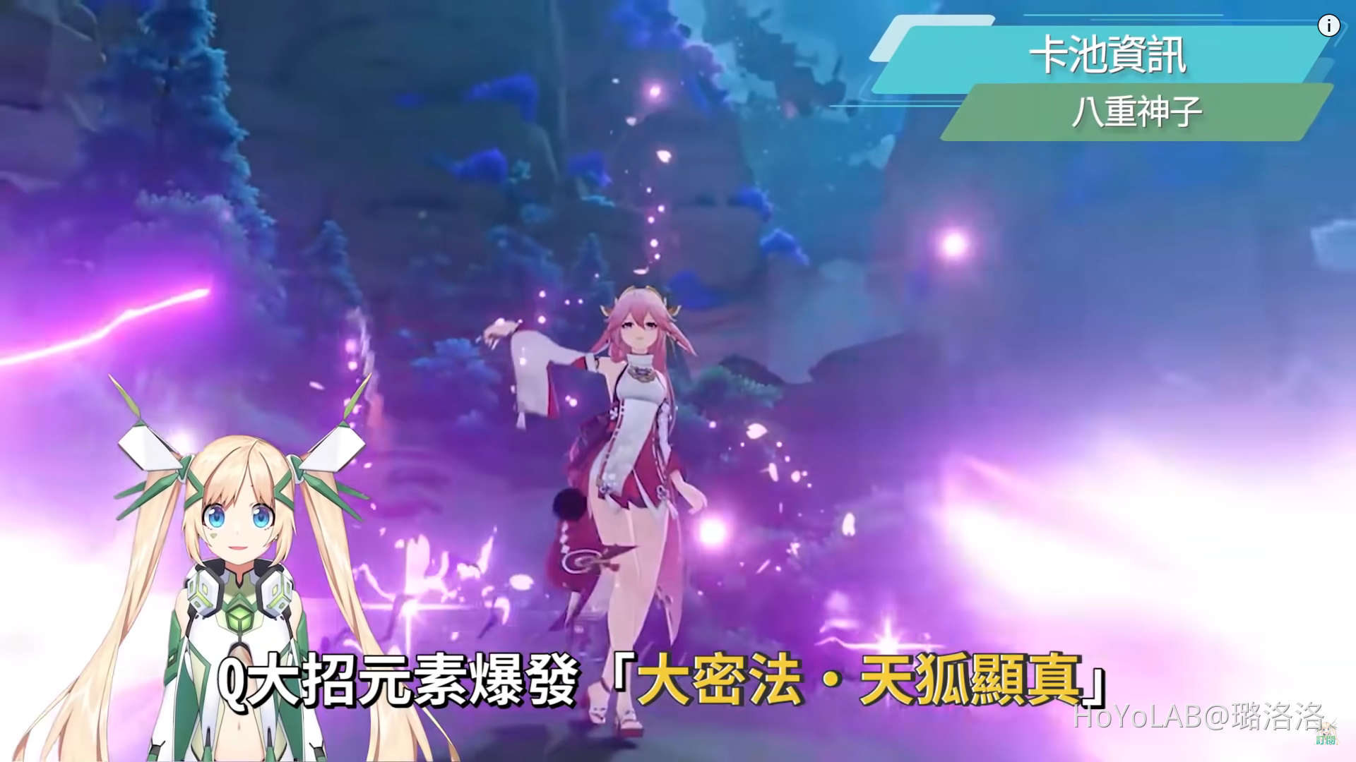 首先在2/16版本更新後登場的就是2.5版本的新角色八重神子,卡池時間為2/16~3/8,同一卡池中也會同步實裝八重神子的專屬新武器「神樂之真意」,至於卡池同步會實裝哪些四星角色在直播中未公布,不過既然有主打雷元素輸出的八重神子和雷電將軍的出現,洛洛就會蠻期待九條裟羅可以加倍的,若是想玩雷隊,滿命九條所帶來的雷元素暴傷加成可是非常香的,後續就請大家等候官方平台公告吧!畢竟抽卡都是以五星角色為主再去順帶撈同一期的四星角色。接下來則大致說明一下八重神子的角色定位和天賦特性。
