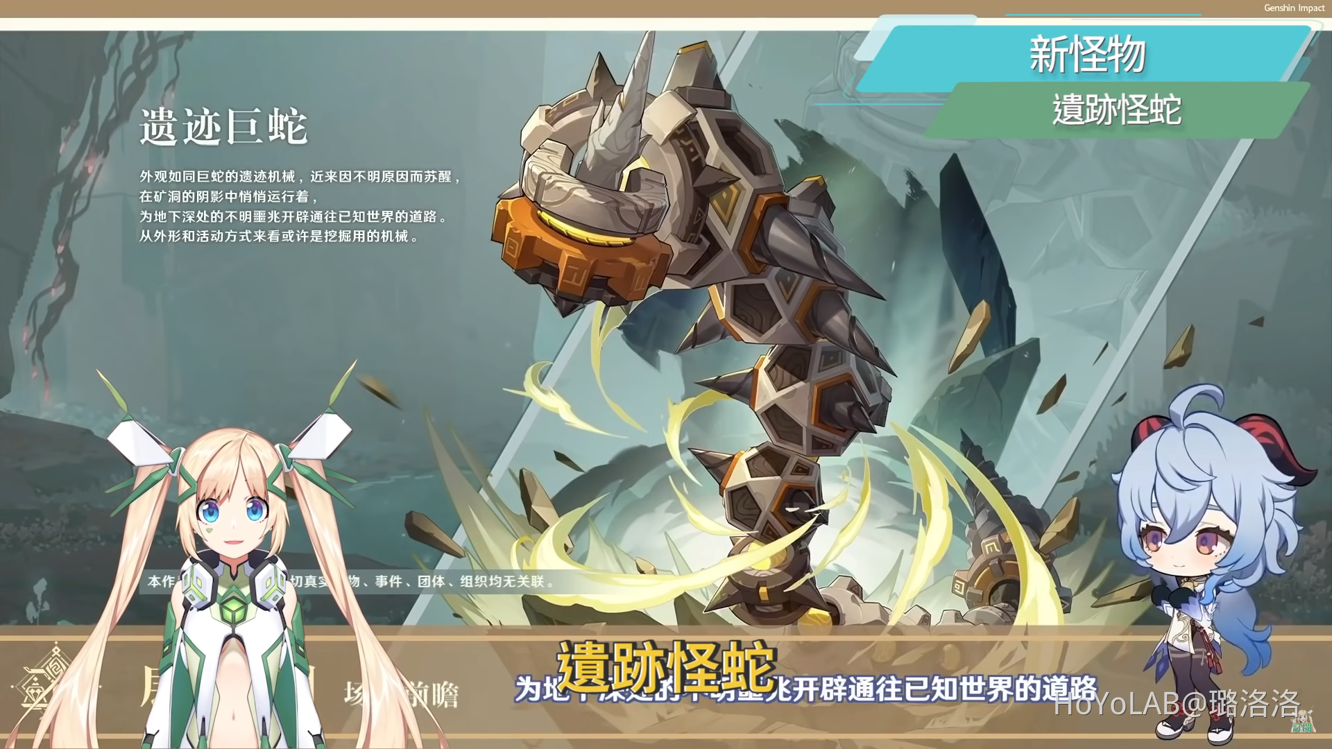 在2.6版本即將迎來的新地圖中,也將會出現新的遺跡系列怪物-遺跡怪蛇,這是早前璃月用來挖掘的機械工具,而以往遺跡系列的怪物特性就是物抗都非常高,不知道屆時輸出模式和傷害如何,應該在2.6前瞻直播還會再有其他補充。