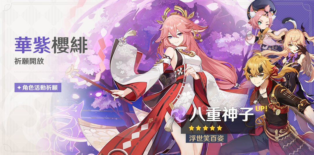 ●活動期間,限定五星角色「浮世笑百姿·八重神子(雷)」的祈願抽取機率將大幅提升!
