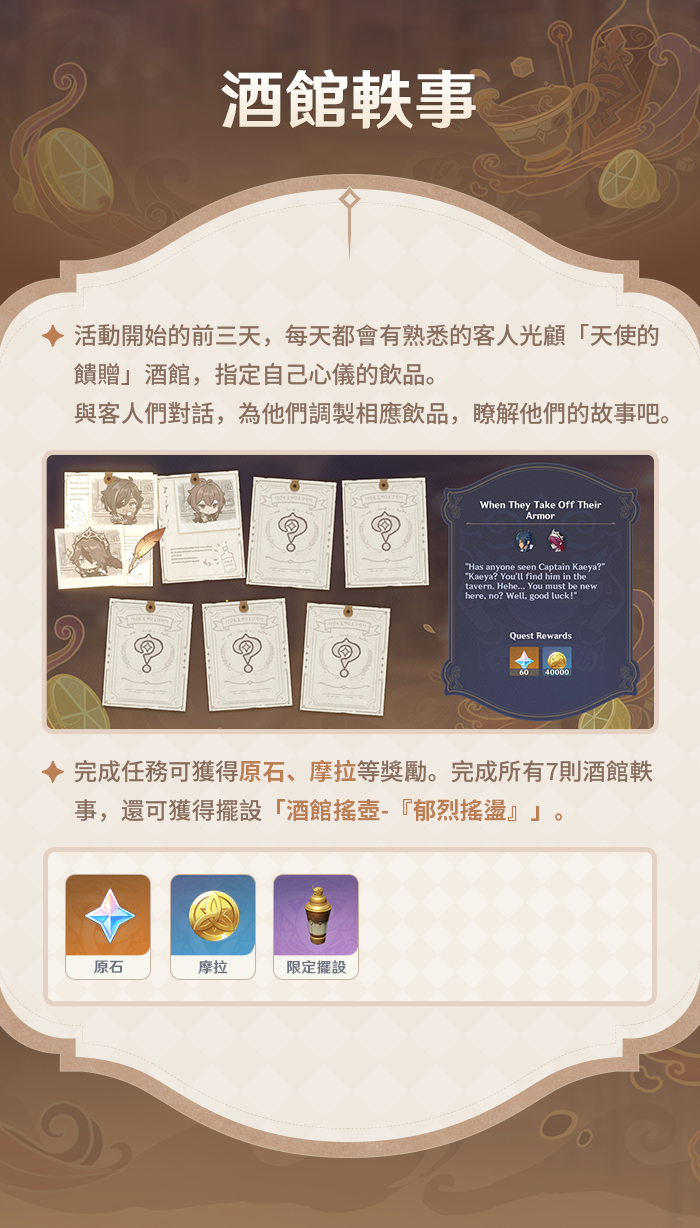 *活動期間,接取浪沫之章·第一幕「浪花不再歸海」所需的冒險等階會調整至28級,且無需消耗傳說鑰匙。