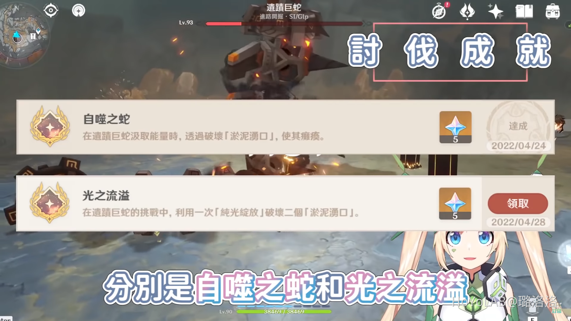 關於遺跡巨蛇的兩個成就,分別是自噬之蛇和光之流溢。