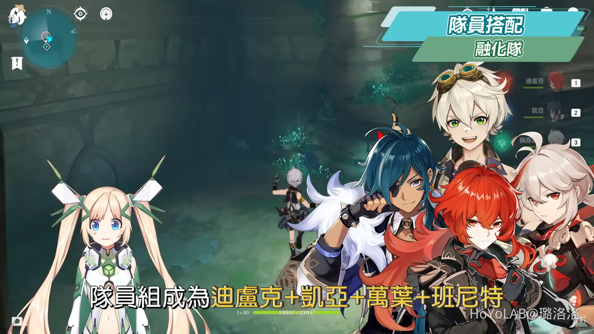 若是要玩迪盧克融化隊變成「融盧」隊的話,隊員組成為迪盧克+凱亞+萬葉+班尼特,但這一組陣容會比較吃手法以及走位,重點在於必須要確保萬葉開大後所染色的元素要是冰元素,在染色的過程中盡量不要被怪物攻擊以免被**染色,因此開技能的順序會是:凱亞E技能讓敵人上冰元素→萬葉出來E技能擴散減抗以及開Q大招染色→切班尼特出來QE→萬葉出來E擴散減抗→凱亞出來開Q→迪盧克出來QEAAA的輸出循環。