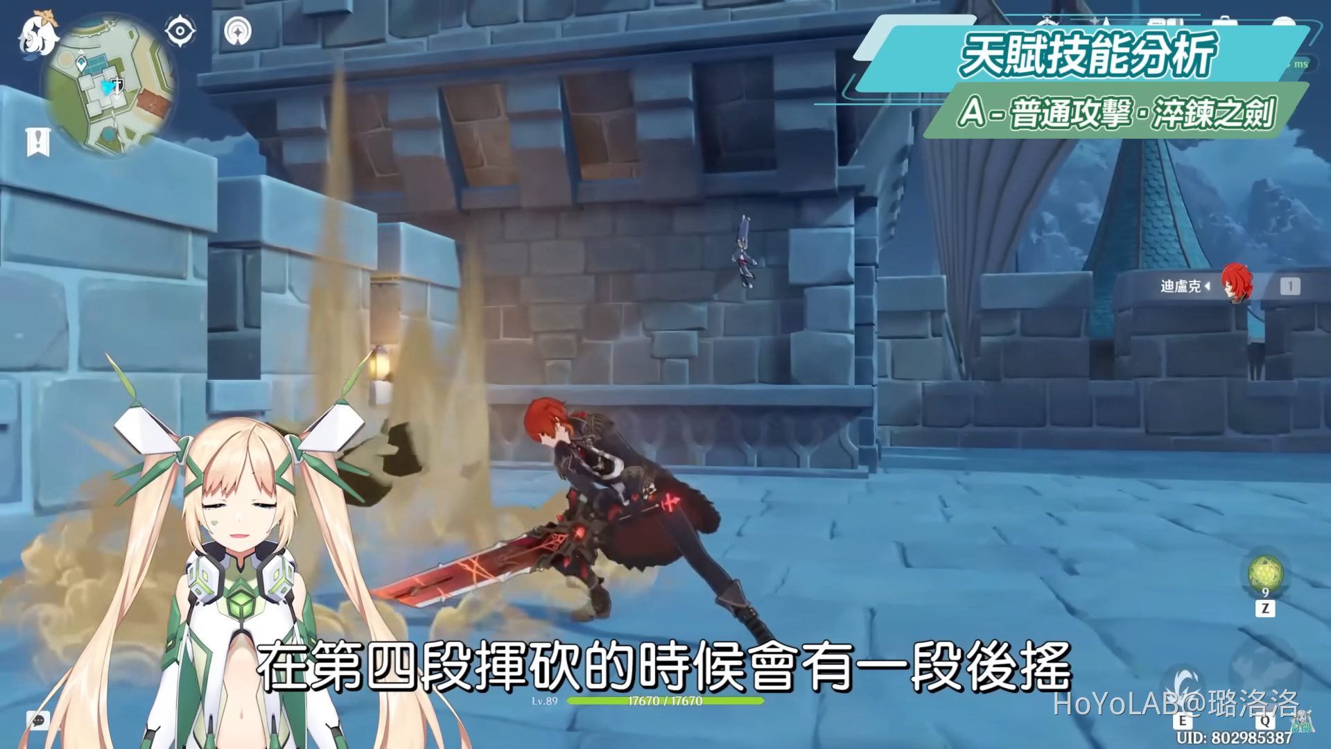 迪盧克的普攻是四段式的揮砍,第二、三段揮砍的時候會有一小段前搖,在第四段揮砍的時候會有一段後搖,若是要取消的話可以搭配E技能的連招來做Combo,如果解鎖滿命效果的話則是在開啟E技能後的普通攻擊不會受到重置連擊段數的影響,後面會再補充一般在使用迪盧克時的常見輸出手法。