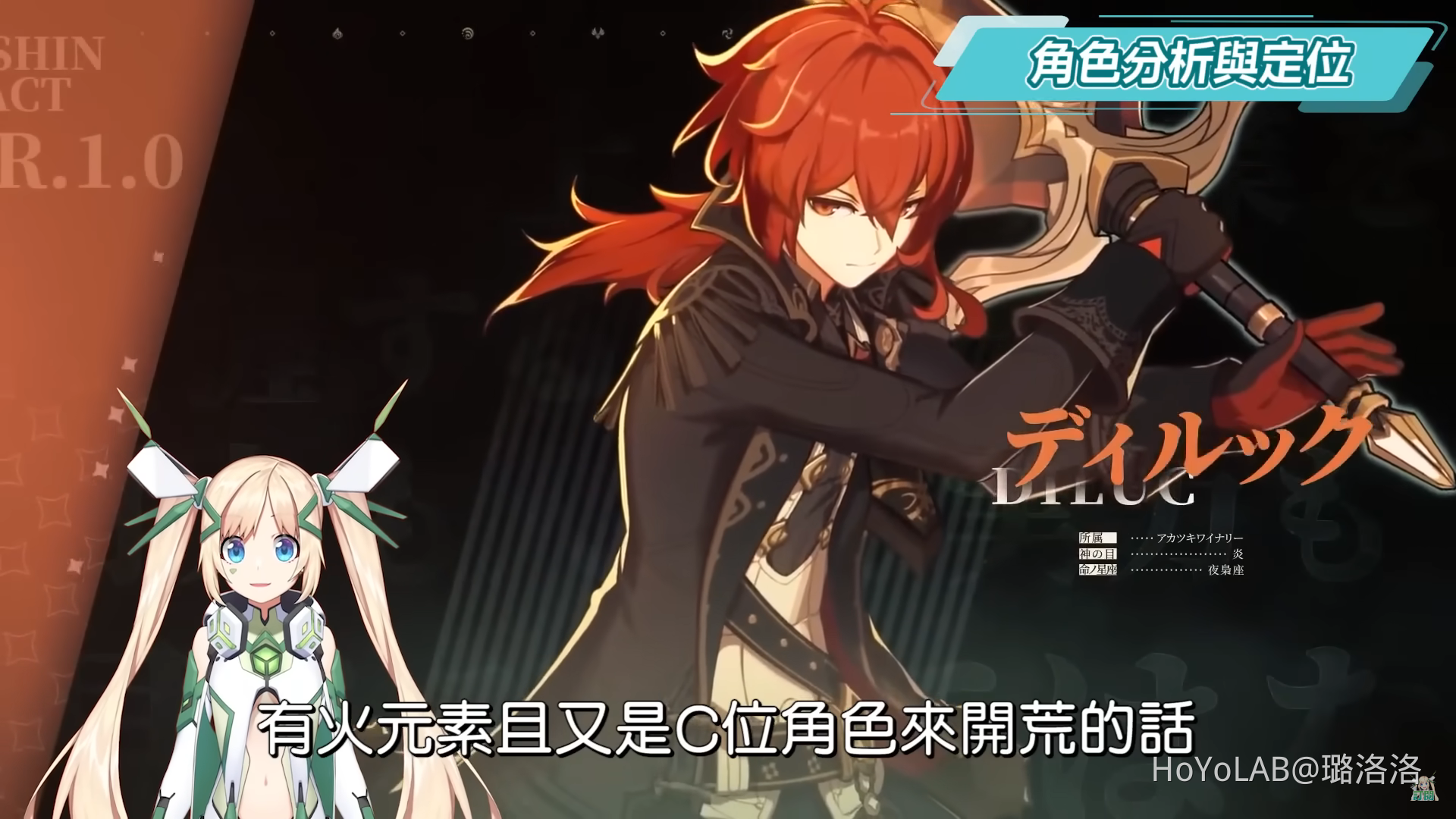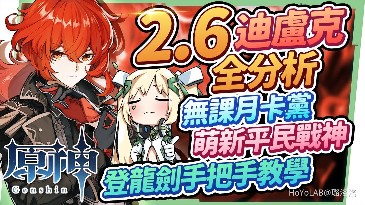 哈囉哈囉! 我是虛擬Youtuber璐洛洛,本次要帶來的是2.6版本後的迪盧克角色全分析,*期洛洛會把一些之前沒有介紹過的五星角色再補上相關的分析影片,迪盧克身為常駐五虎將中的火屬C位角色,在目前版本中的定位和適合的玩家類型有哪些?已經有火C的情況下若抽到迪盧克後還需要練嗎?而若你是迪盧克真愛黨的話,洛洛也會在影片中帶來一定要學會的登龍劍手把手教學啦,此外也會詳細解說關於迪盧克的命之座、推薦的聖遺物、武器搭配和組隊陣容,那影片開始前,若你還沒有訂閱洛洛的頻道的話,記得先訂閱一下唷!