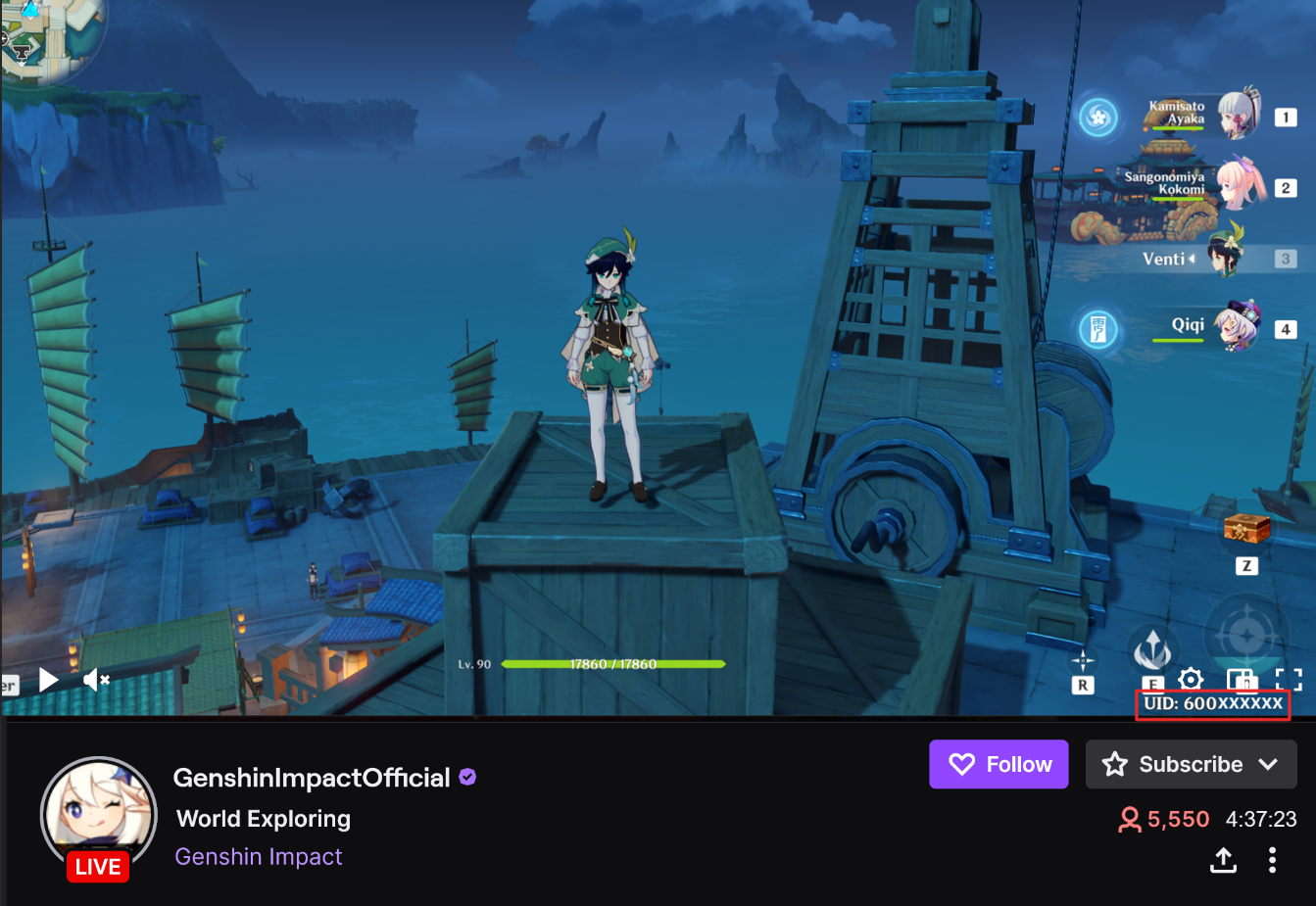 活動期間,在Twitch《原神》區直播時間達到: