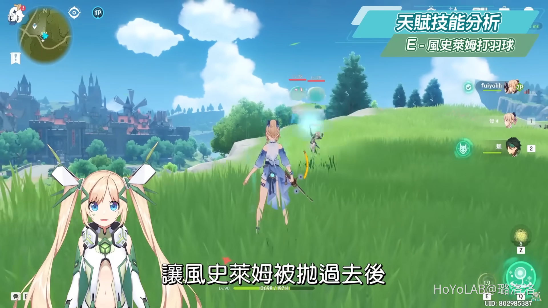 先前1.6版本羽球節活動出來時,就有出現用琴團長將可莉當成羽球、凝光開璇璣屏當網子,兩個琴團長互打的有趣短片,而如果想用琴團長的風壓劍打羽球,也可以用風元素傷害會免疫的風史萊姆來當羽球,推薦可以和好朋友們到蒙德地區「西風之地的廟宇」附近,找到有兩株蒲公英的山坡上,和對面的琴團長好友一起互相把風史萊姆吸附出來拋過去,彼此之間最好也有個默契算一下風壓劍的冷卻時間6秒,這樣才能夠抓個時間差讓風史萊姆被拋過去後能夠讓對面琴團長馬上接到。