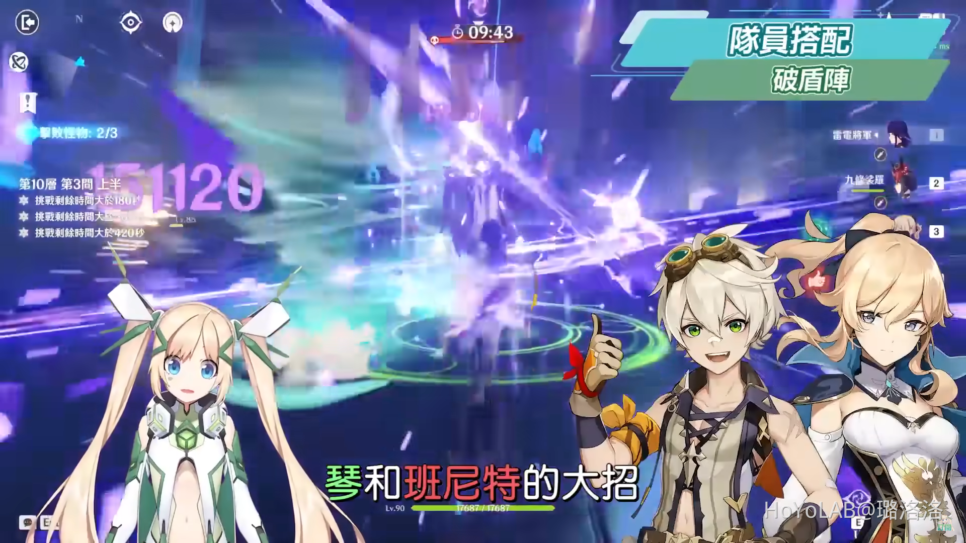 自從煩人的使徒和詠者的無敵盾在深境螺旋出來後,就變成不少玩家討厭的噩夢,即便有抽神里綾華這個破盾女王的情況下,但深境螺旋上下都有破盾需求時該怎麼辦,這邊也推薦可以考慮使用搭配琴和班尼特的大招,只要兩者大招互相搭配得宜也可以快速破這討厭的無敵盾,破盾的流程可以是在我們可以先開班尼特大招後,再切換琴開大招,此時角色會受到班尼特Q大招的火元素附著影響,讓琴大招的風元素持續擴散角色身上的火元素,就可以透過這身上持續擴散的火元素,去破除深淵詠者身上的雷護盾,在琴團長大招10秒結束後,雷詠者的護盾也只剩下不到20%左右就能快速被清乾淨,或是班尼特穿如雷4件套也可以快速破除雷詠者的護盾,但洛洛通常都很懶得換班尼特身上的聖遺物套裝。