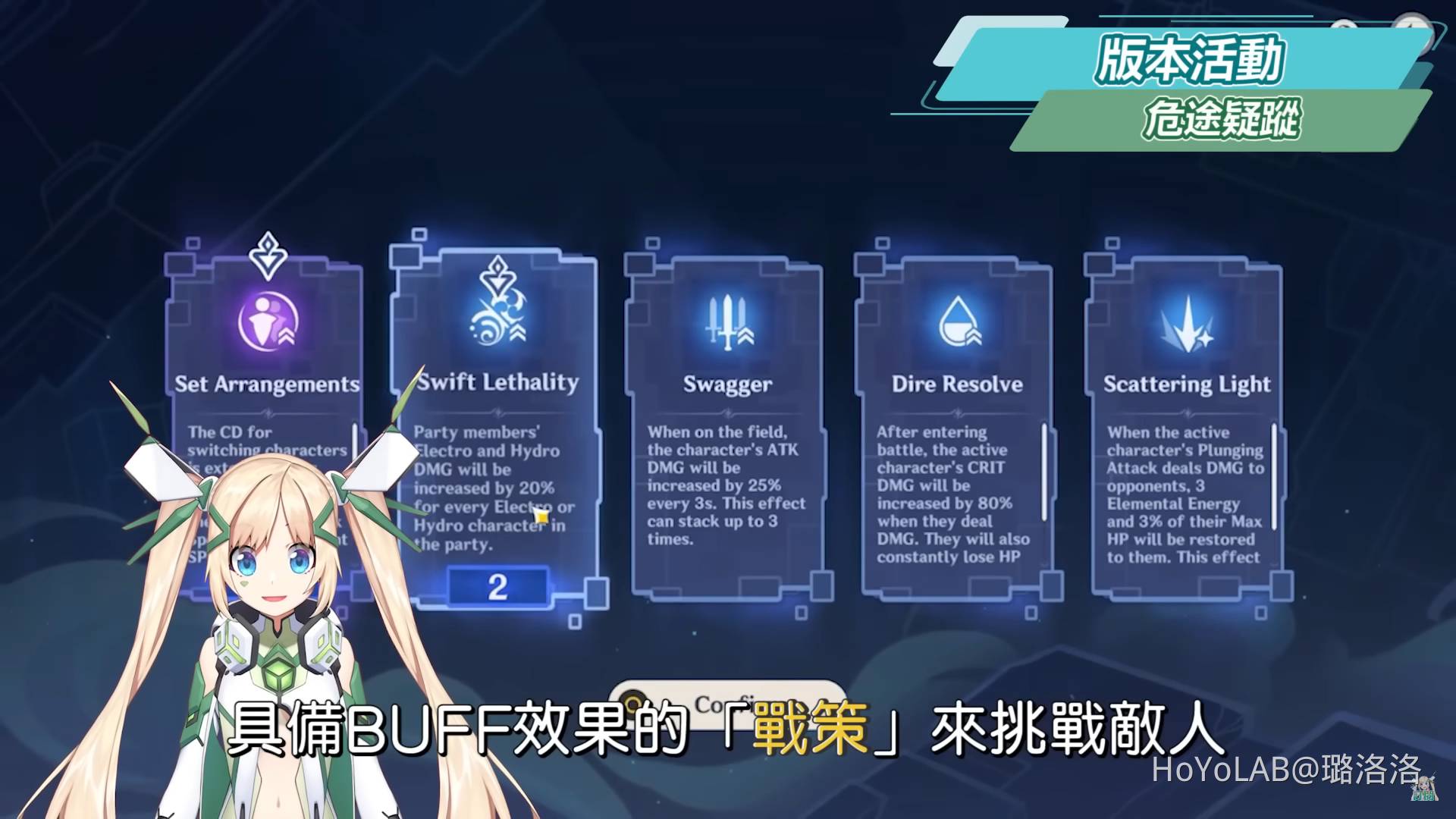 在2.7版本中的第一個活動「危途疑蹤」,我們需要在*域秘境中搭配具備BUFF效果的「戰策」來挑戰敵人,一共會有四個秘境,前三個秘境會有三輪敵人,最後一個秘境會有六輪敵人,中間也會有官方提供的試用角色可以使用,部分秘境在換輪次的時候會有一些限制跟機制,雖然每換輪次可以編輯隊伍,但是會有角色在第一輪和第三輪挑戰的同時,在第二輪會沒有辦法出場。而也有部分秘境的機制是在隊伍進入下一個輪次時,會有隨機兩個角色被禁用,並且在後續的輪次都無法使用,雖然聽起來有點複雜,但有點類似先前的振晶的研究、百人一揆、魔藥解析等活動玩法,考驗玩家對組隊的搭配觀念和角色熟悉度。