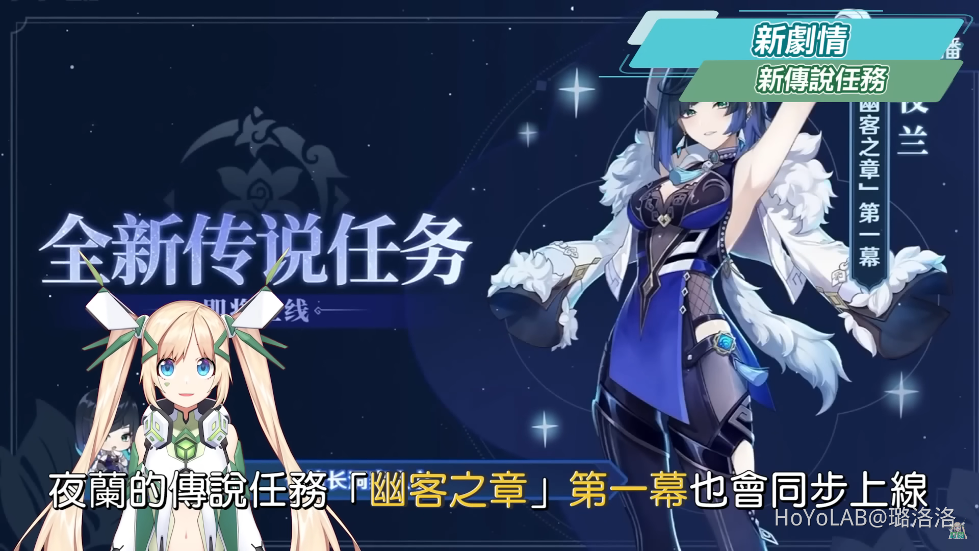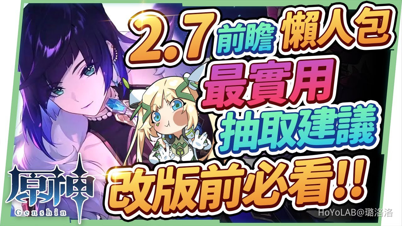 哈囉哈囉! 我是虛擬Youtuber璐洛洛,歷經了《原神》史上最長的版本走期,2.7版本的前瞻直播終於在5/20 晚上公布了,這次將會加入新五星角色夜蘭與四星角色久岐忍,以及荒瀧一斗和魈的復刻,洛洛這邊一樣也整理了相關的懶人包,提供給沒有跟到前瞻直播或是還想吸收其他補充資訊的肉肉們,若是對於角色卡池不太清楚該怎麼抽取的話,洛洛也會在稍後影片中大致提供角色的定位與特性提供抽取參考,除了整理官方前瞻直播的懶人包以外,洛洛也會補充一些前瞻直播中沒有提到的細節,本次影片會將直播內容彙整成以下重點:角色卡池、新武器、新劇情、版本活動、版本優化與其他新內容補充,影片開始前,若你還沒訂閱洛洛的頻道的話,記得先訂閱一下唷!