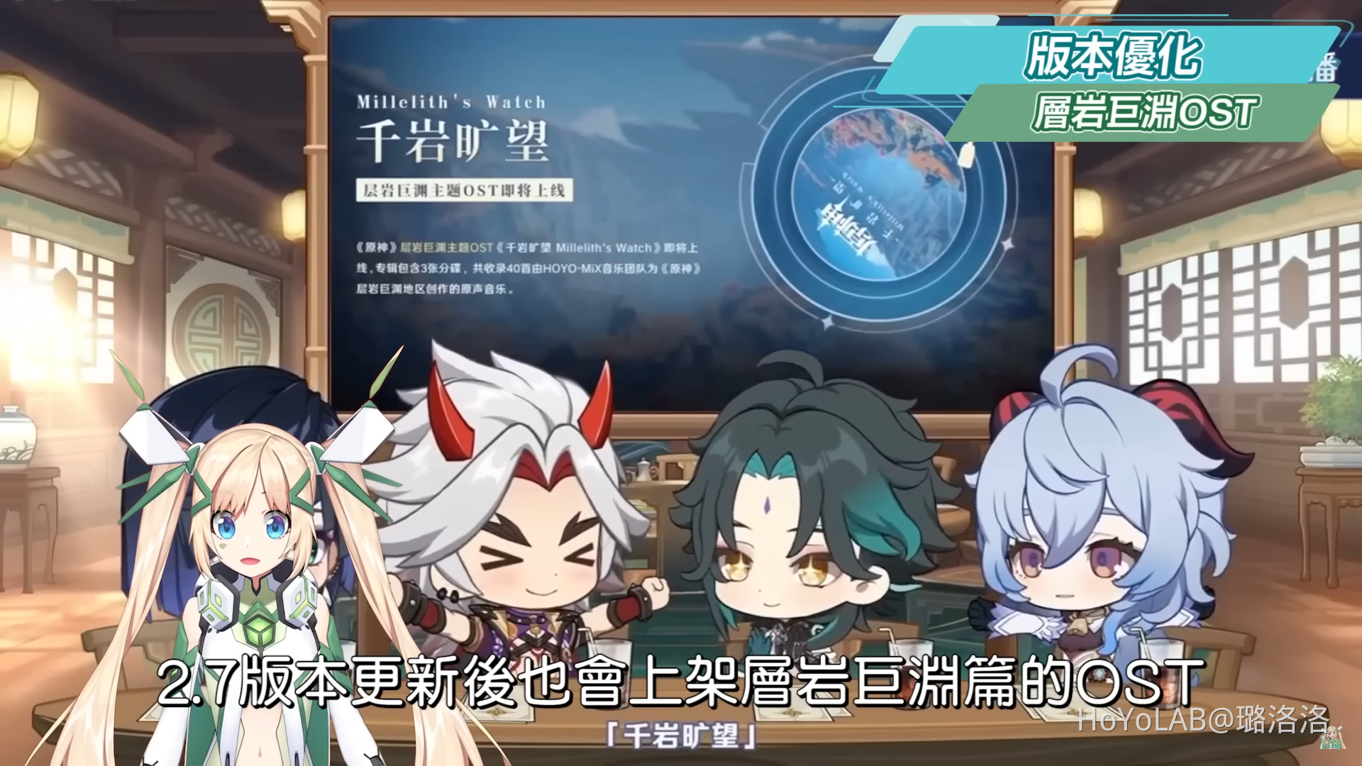 那以上就是原神2.7版本前瞻直播的重點和補充,關於新角色的實測,洛洛也會在正式推出後製作相關的分析影片,我是虛擬Youtuber璐洛洛,我們下次見囉!