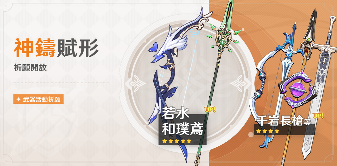 ●活動期間,限定五星武器「弓·若水」、五星武器「長柄武器·和璞鳶」的祈願抽取機率將大幅提升!