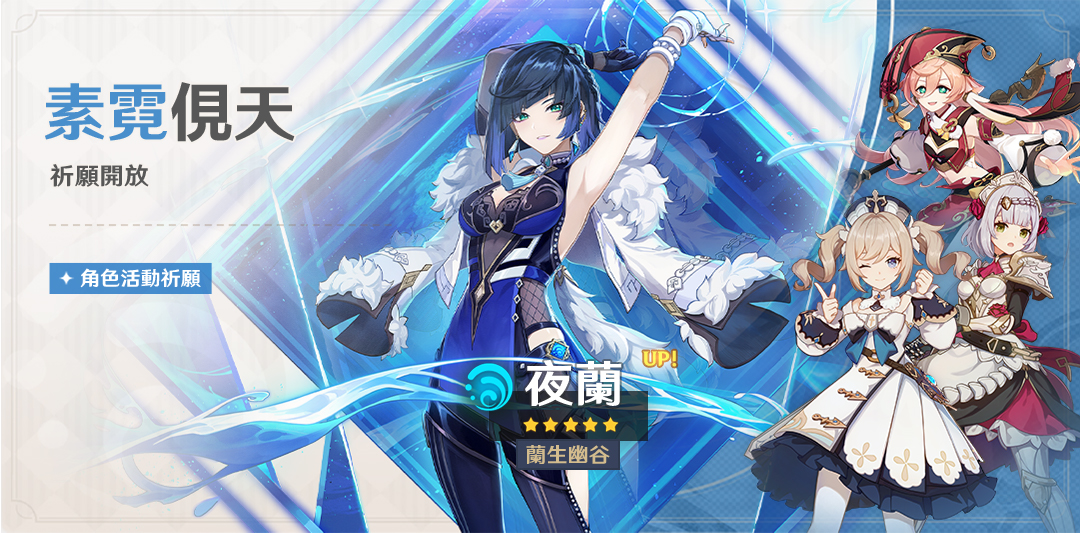●活動期間,限定五星角色「蘭生幽谷·夜蘭(水)」的祈願抽取機率將大幅提升!