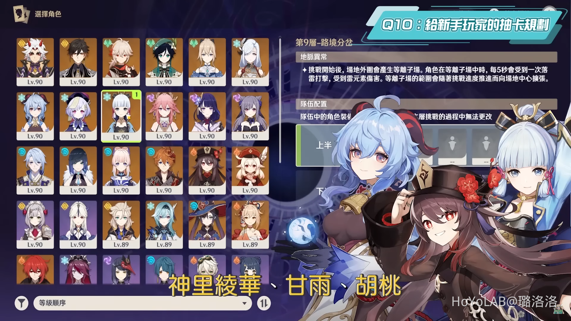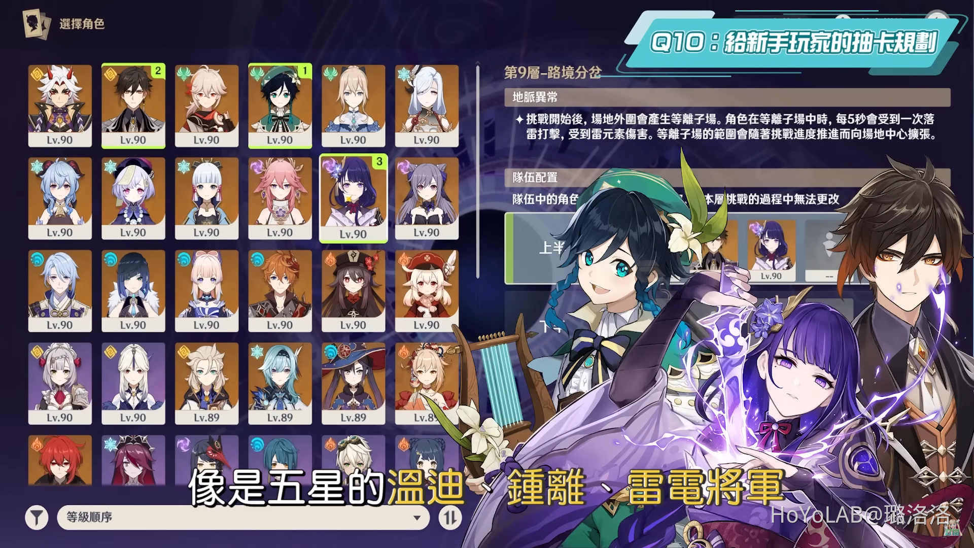 最後就是洛洛這邊以從開服玩到現在60等,整理一些濃縮的抽卡規劃方向給未來的新手們參考,其實玩到後期,當你的角色池該有的角色都組建的差不多後,只要深境螺旋每次都能滿星,剩下的抽角色都是看自己的喜好,但若是還在前期拓荒的新手,若是想要往深境螺旋滿星的目標邁進的話,可以多看一些角色評測影片去找到自己用來專門應對深境螺旋的主C,洛洛這邊比較推薦的深境螺旋主C會是:神里綾華、甘雨、胡桃,都是在很多種深淵環境下還算萬用的出場主C。
