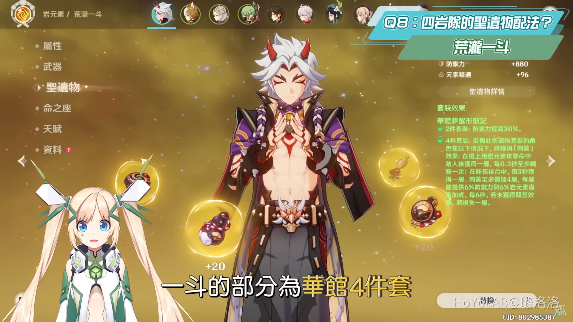 【原神研究室】荒瀧一斗復刻Q&A▸岩隊不推薦新手練?成本真的那麼高?如何破盾?四岩隊全面板&聖遺物套裝參考▹璐洛洛◃