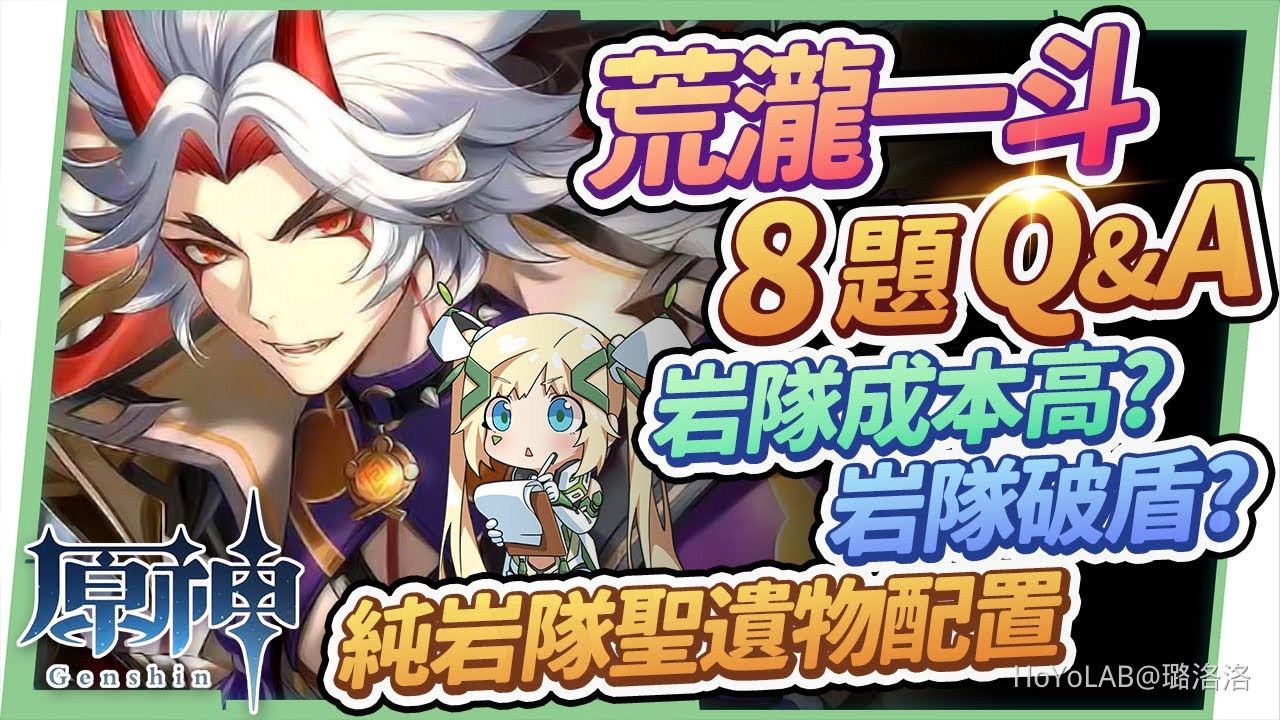 以上就是洛洛彙整的8題荒瀧一斗Q&A,希望肉肉們都可以更加瞭解荒瀧一斗這名角色,以及岩隊相關的組成觀念,岩隊確實就是一個養起來暴力又安如磐石的隊伍,但也相對比較偏向有愛的人再練岩隊,畢竟元素反應還是比較容易上手的輸出方式,若是還有想了解其他角*,**也已經製作過相當多的全分析影片,大家也可以善用「關鍵字+洛洛」的搜尋方式查找相關內容,身邊有朋友不知道如何培養一斗也可以分享影片給他,我們下次見囉!
