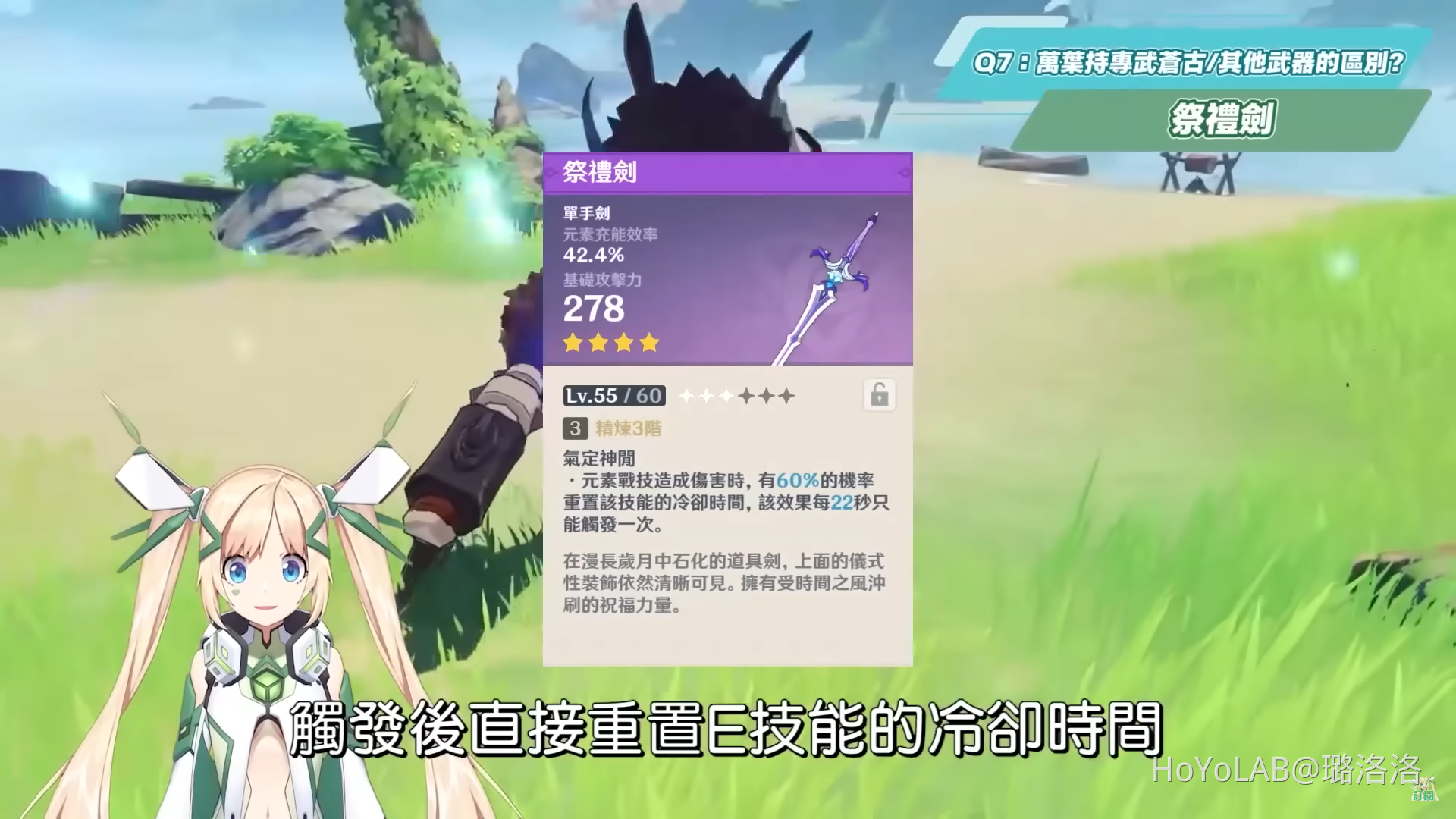 祭禮劍的特性就是可以在觸發後直接重置E技能的冷卻時間,因此即便你沒抽到1命的萬葉,也可以透過祭禮劍來直接實現這個雙E的效果,尤其遇到大世界中很多的雜魚小兵,或是深境螺旋中常常會有分波段出現的雜魚小兵,這時候祭禮劍就可以在0命的時候發揮對群加上雙E的效果快速清怪,但其實萬葉的E技能冷卻時間也不算長,加上祭禮劍副屬性沒有提供元素精通,無法在增傷上發揮效果,因此通常會用上祭禮劍的時候比較會是需要對群且缺乏充能的時候,並且如果要使用祭禮劍,最好是滿精煉,否則機率過低沒有觸發到重置冷卻,就失去帶這把武器的意義了。