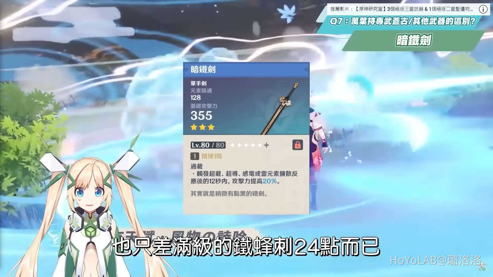 暗鐵劍雖然是三星武器,不過滿級的元素精通也只差滿級的鐵蜂刺24點而已,兩把武器之間增傷的差距很小,加上不用原胚就可以獲得,只要去璃月找到NPC快刀陳對話就可以直接拿到。