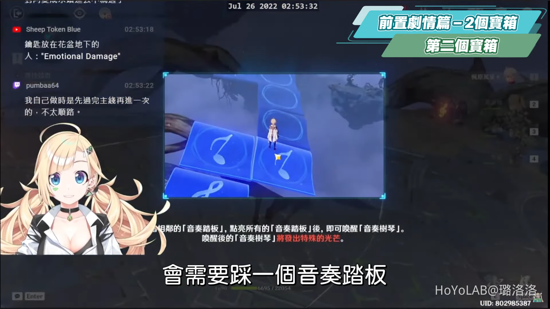 拿完第一個寶箱後跟隨指引會需要踩一個音奏踏板,踩正確後可以解鎖樹琴,接著就可以用解鎖的樹琴開寶箱。