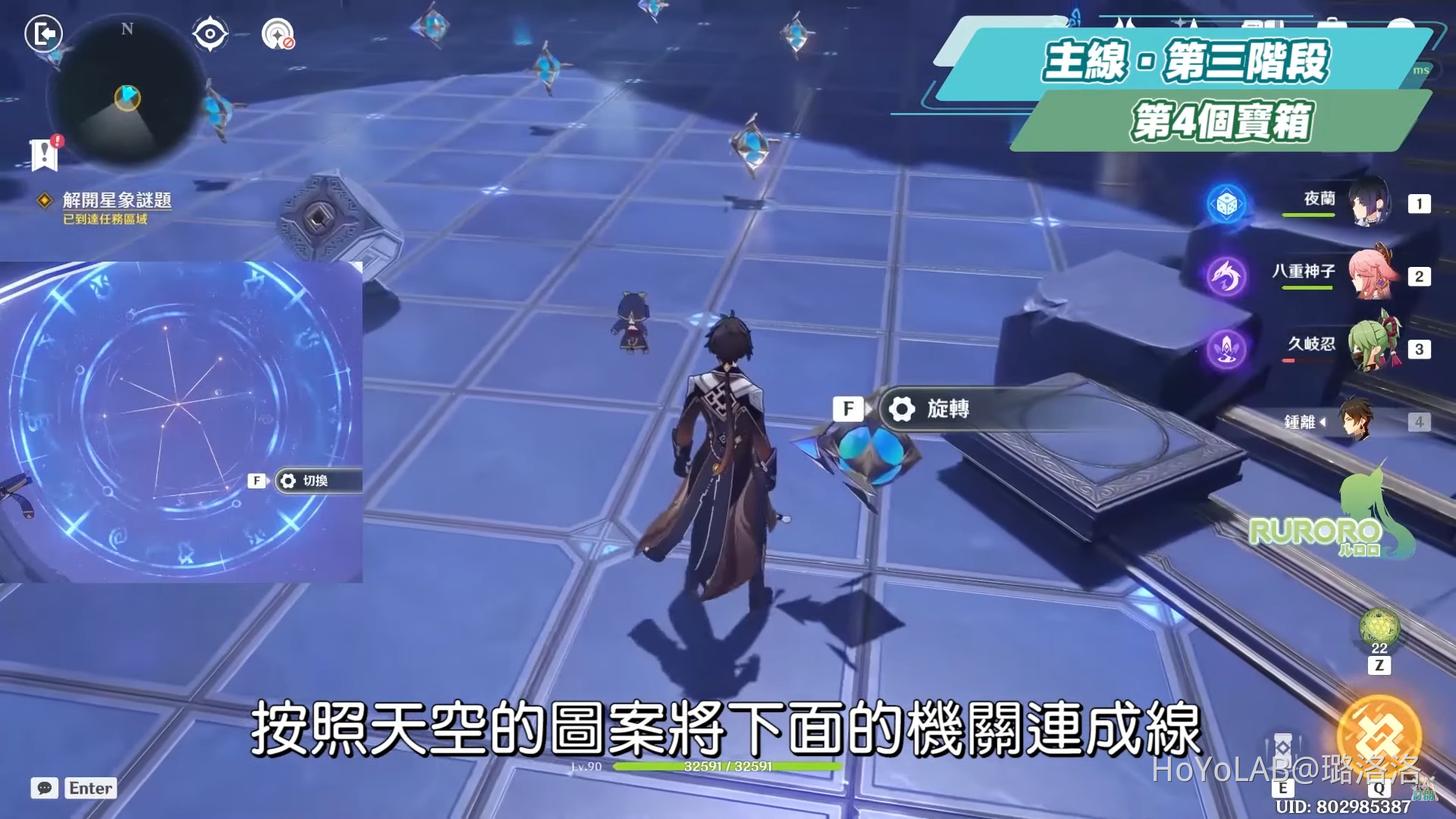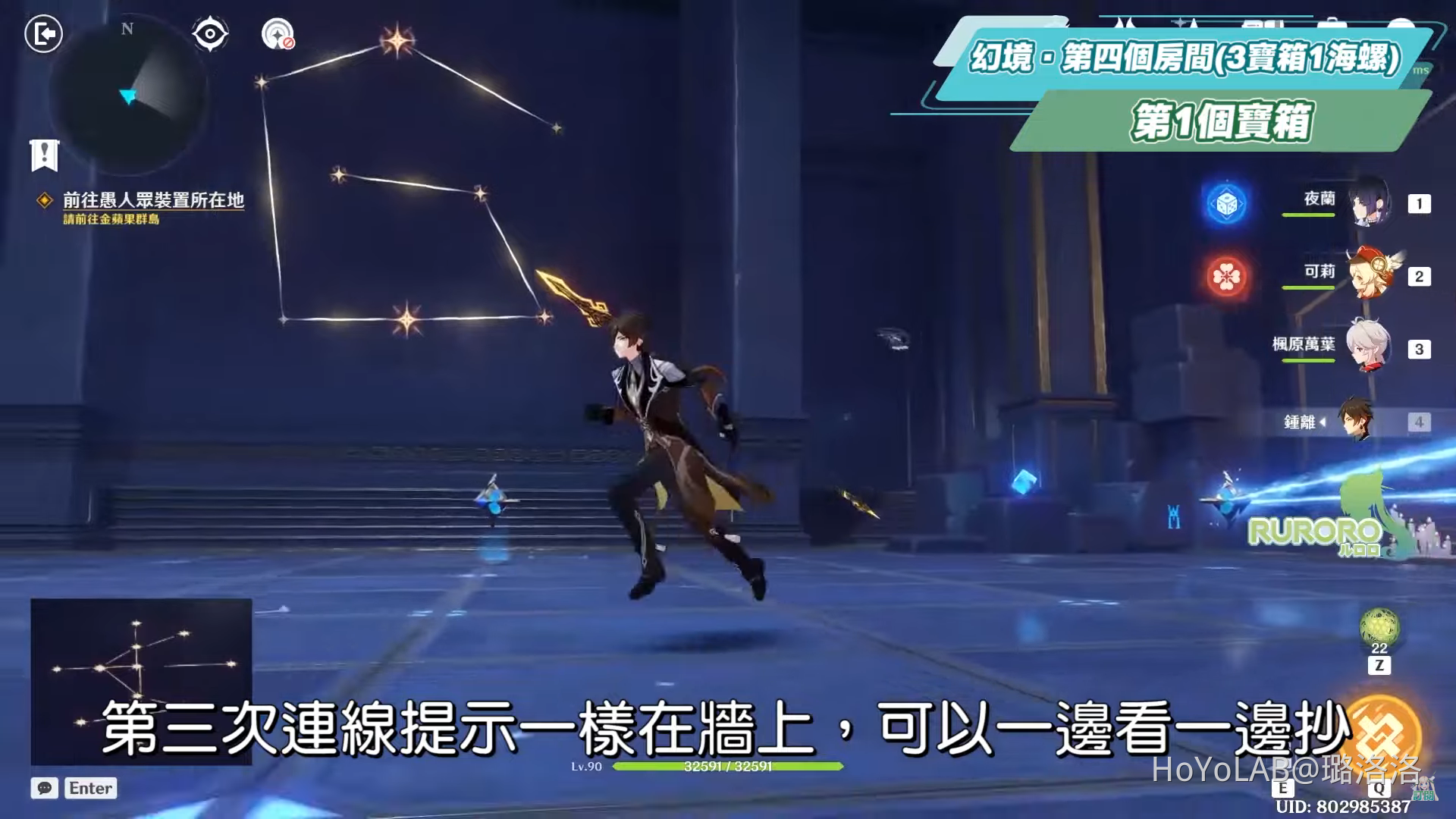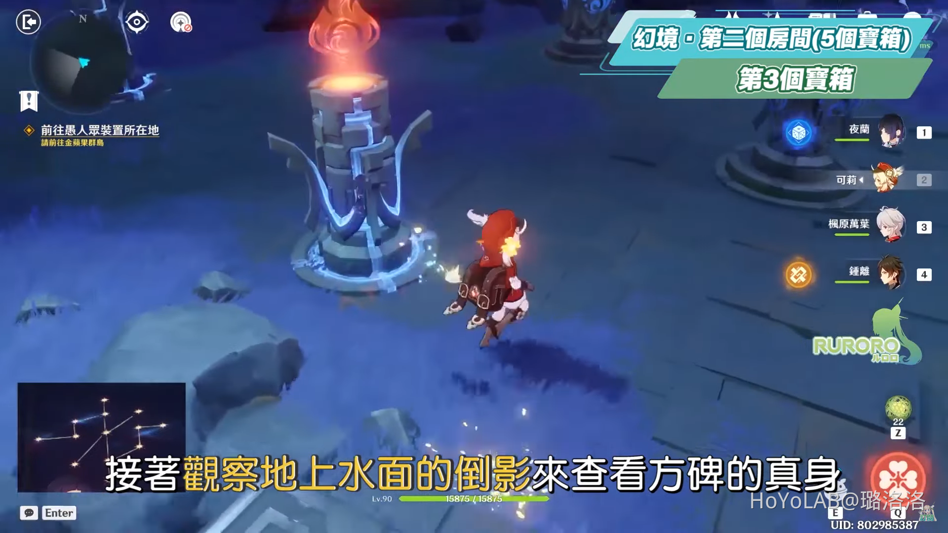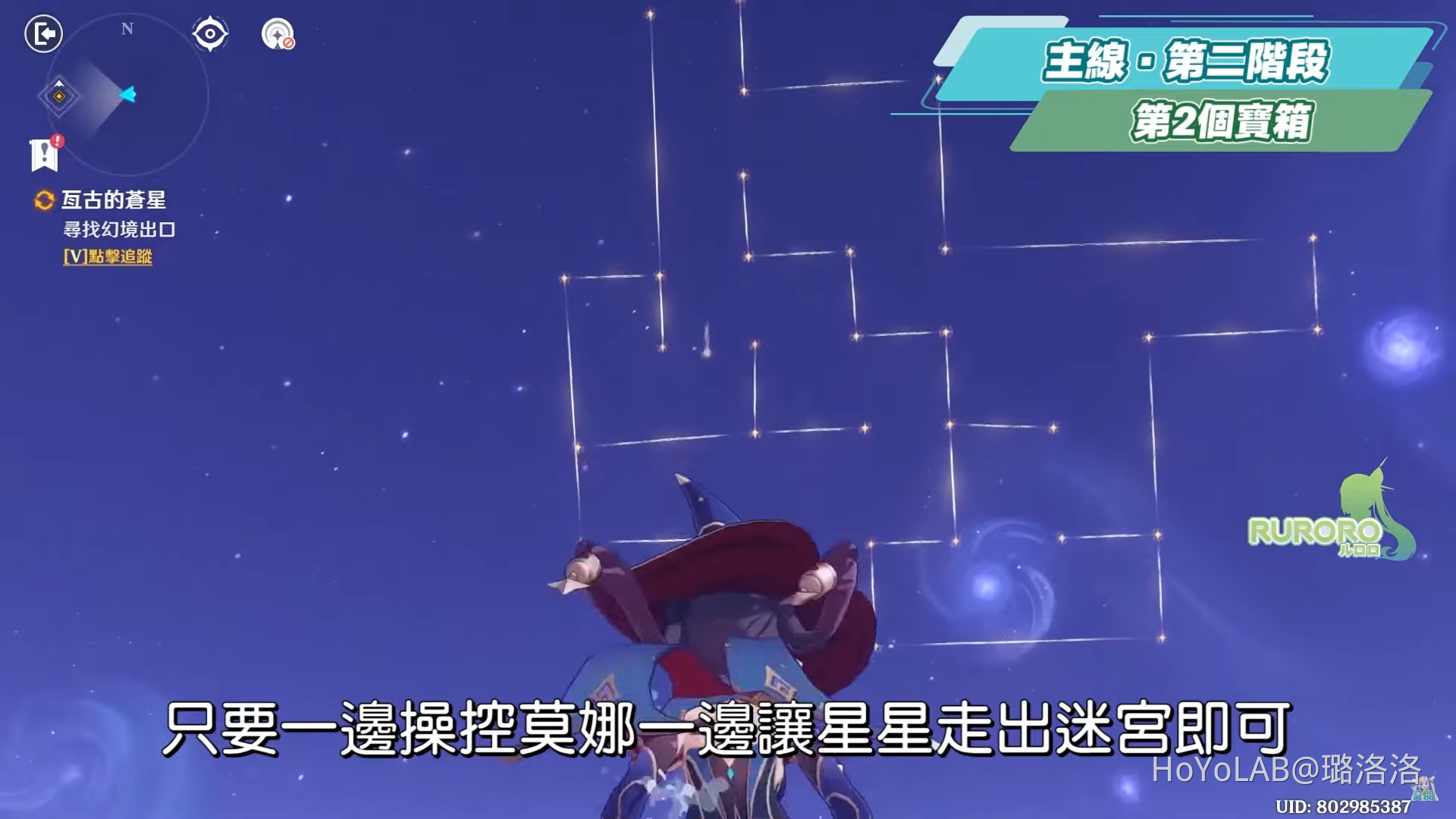 左上小地圖可以先朝向北方,這邊的解謎提示是莫娜命之座的連線,沒有抽到莫娜的人是不是就要自己去網路找圖了?
