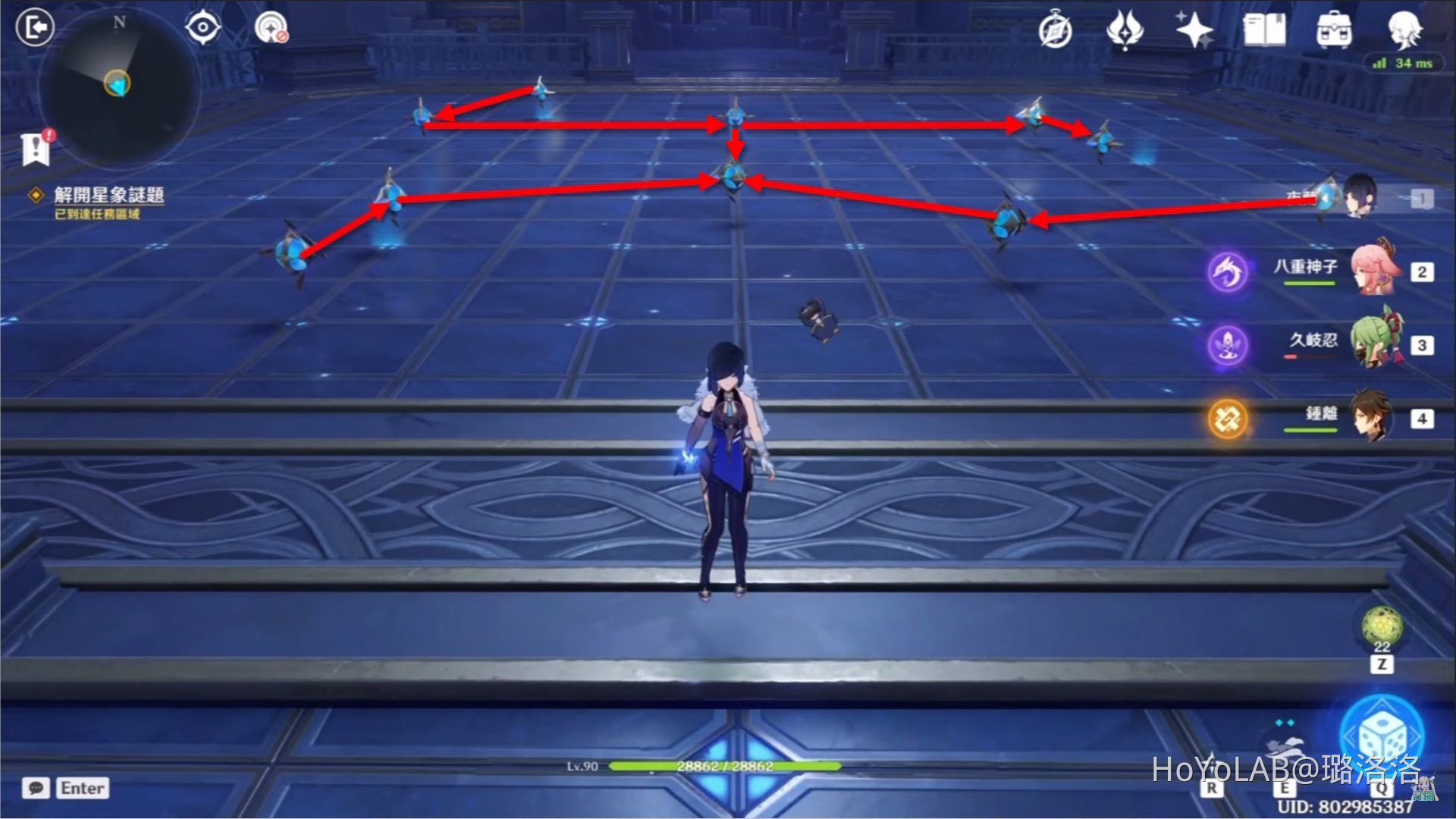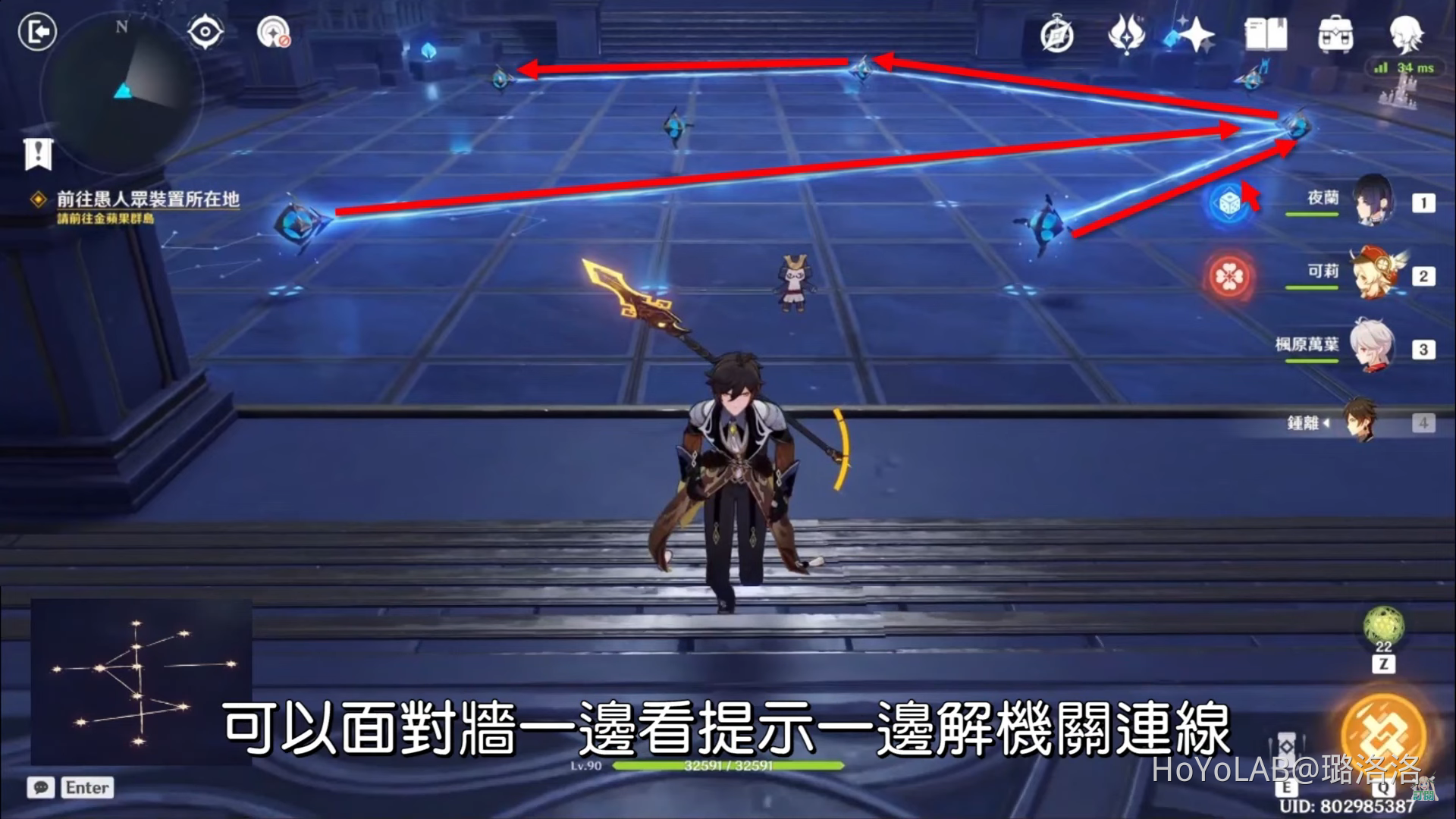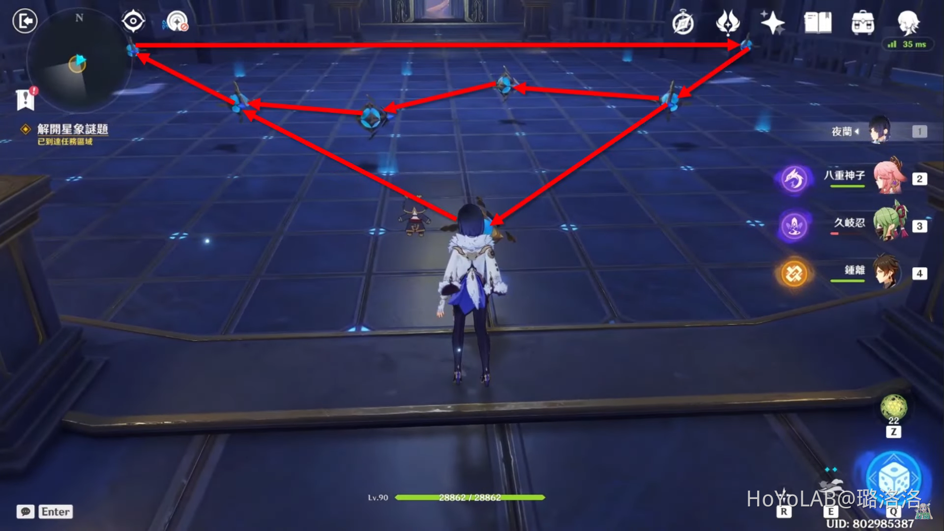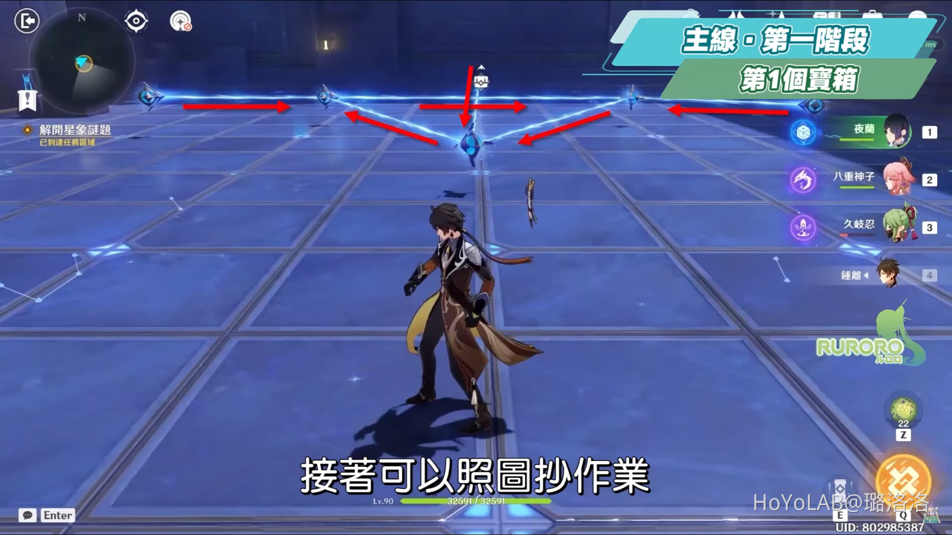 左上小地圖可以先朝向北方,這邊的解謎提示是莫娜命之座的連線,沒有抽到莫娜的人是不是就要自己去網路找圖了?