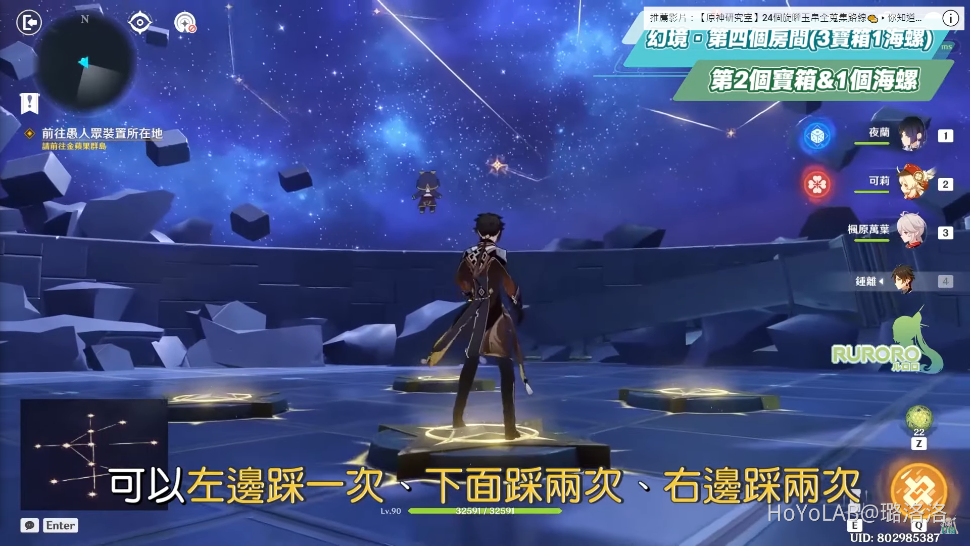 哈囉哈囉! 我是虛擬Youtuber璐洛洛,這次要帶來的是海島劇情第五天會遇到的莫娜幻境『亙古的蒼星』,總共有19個寶箱和1個海螺,同時也會帶來海島主線劇情最後的三個晶核的解謎懶人包,這個幻境是洛洛覺得解謎起來最困難的一個部分,若是暑假作業還沒做完的話可以趕快來抄洛洛的作業,這次影片為了讓出產速度快一點,洛洛也會用比較不同的後製方式,為了後續的須彌版本以及很多想製作的單元,洛洛的影片攻略組成員也在募集中,有興趣的話可以點擊下方影片描述欄的連結看看是不是符合條件哦!那麼就快速來看看整個莫娜的幻境寶箱和解謎流程吧!