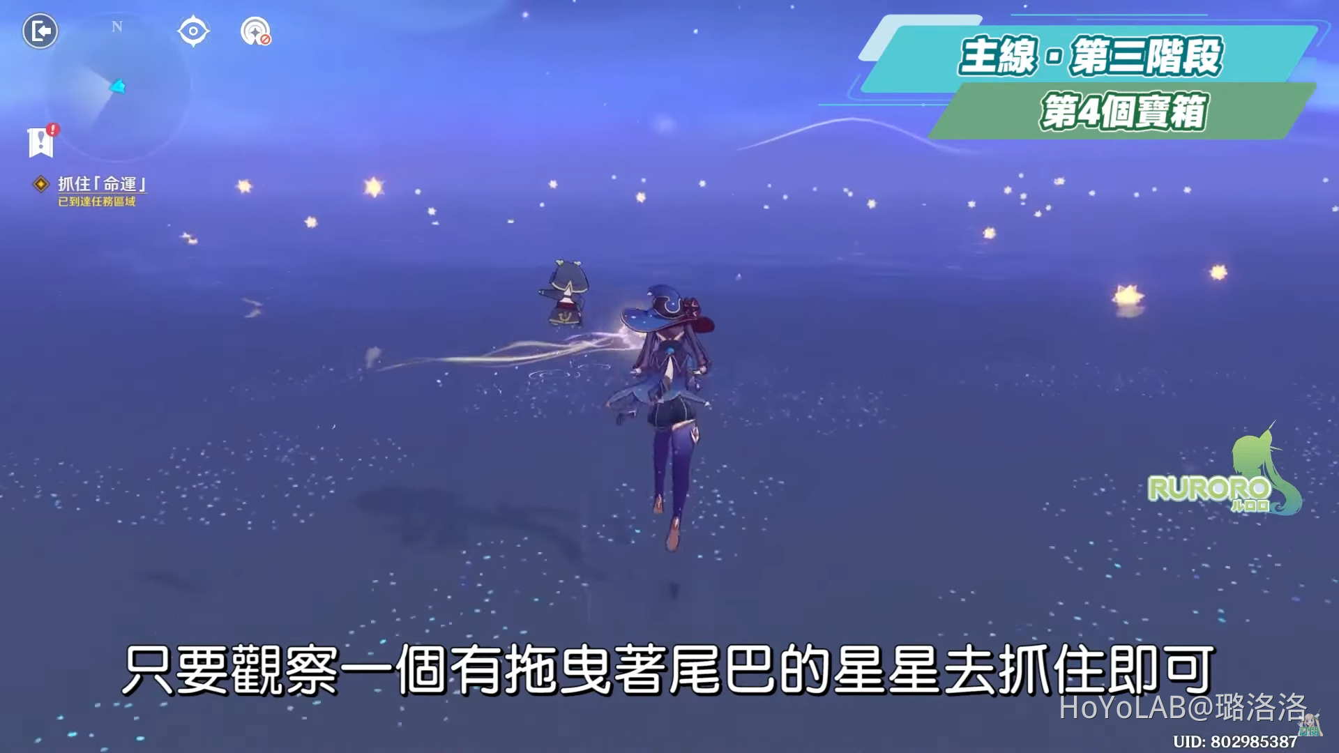 最後跟著劇情來到莫娜抓住「命運」的時候,只要觀察一個有拖曳著尾巴的星星去抓住即可,剩下就是過完第三階段劇情。