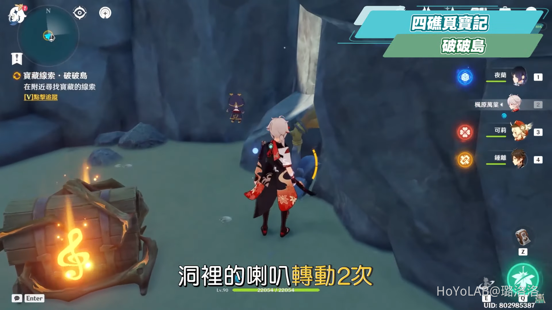 到島上進入洞穴後將石牆打破可以找到寶箱,以及線索航路留書
