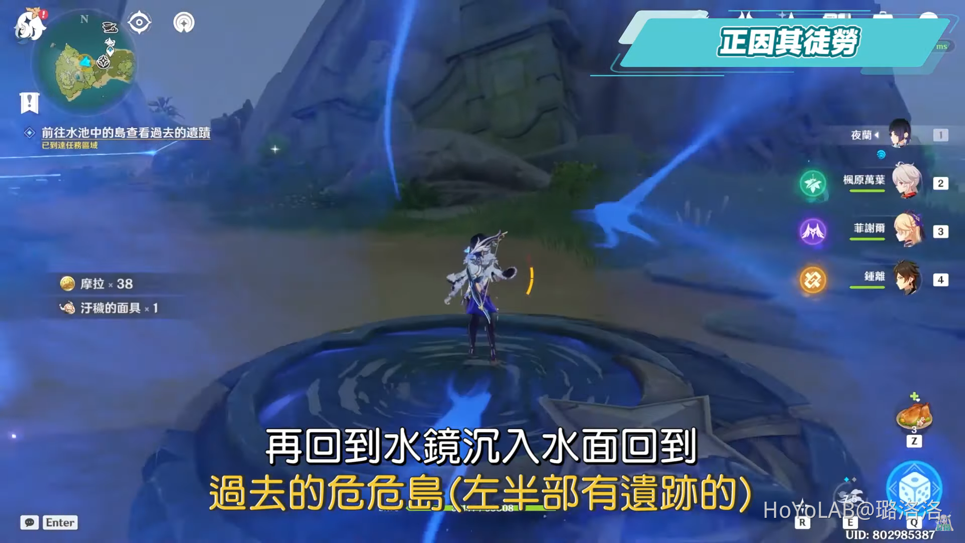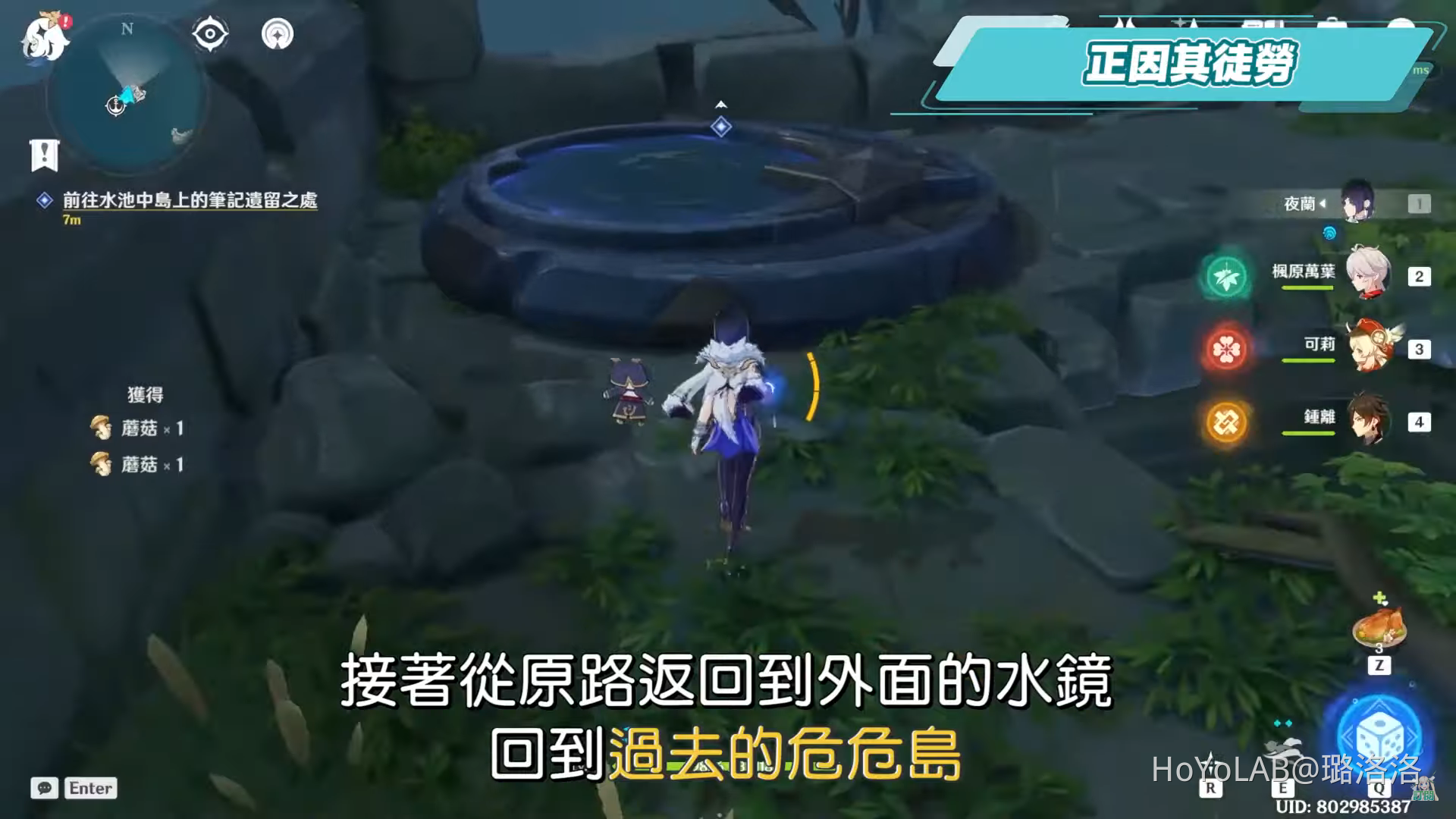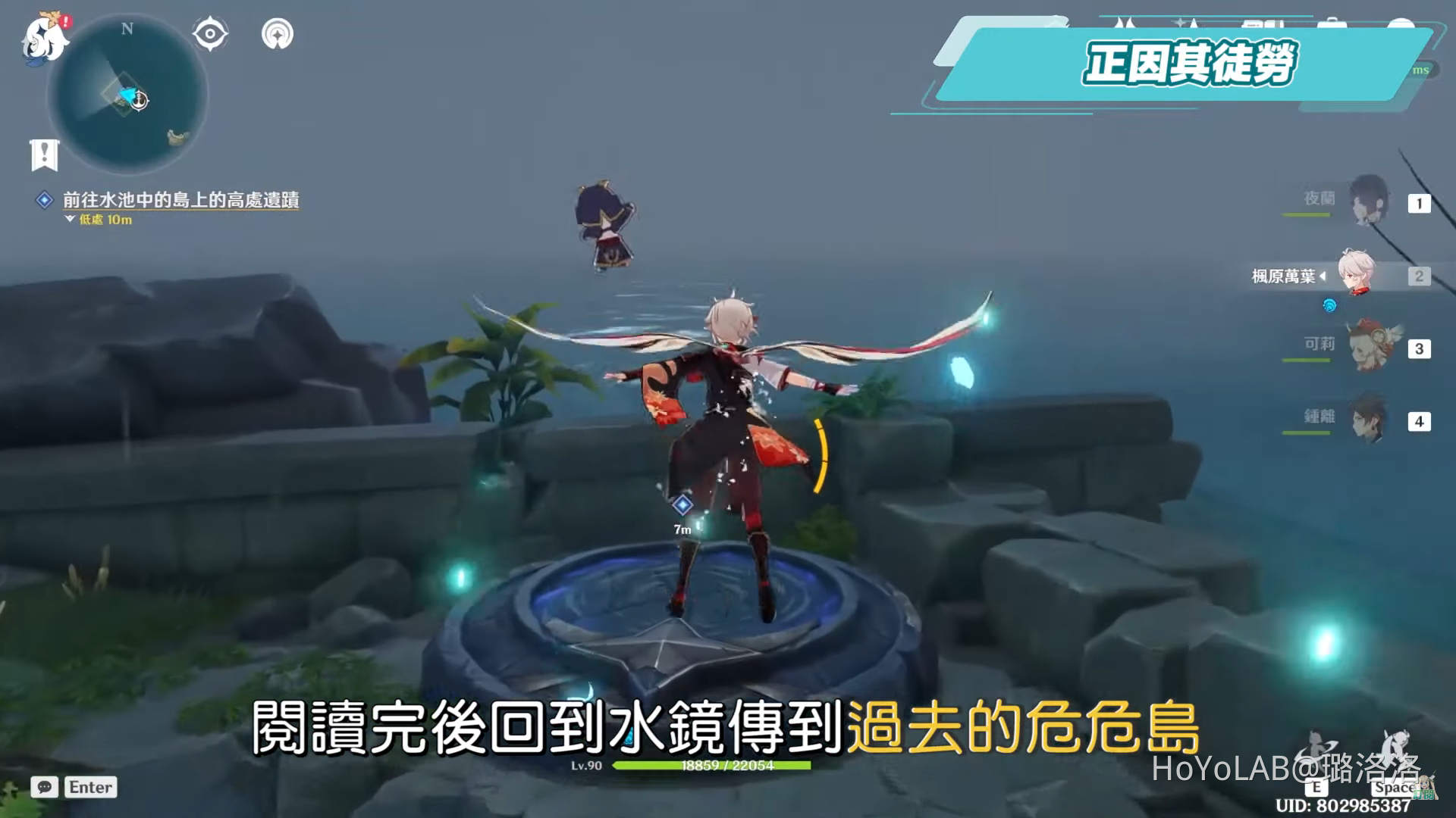最後再從水鏡回到現在的危危島,到對面小島閱讀訊息,任務結束。