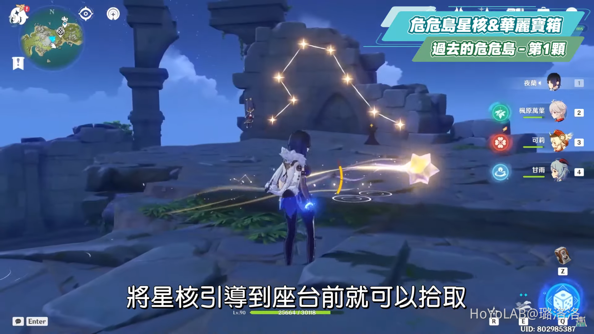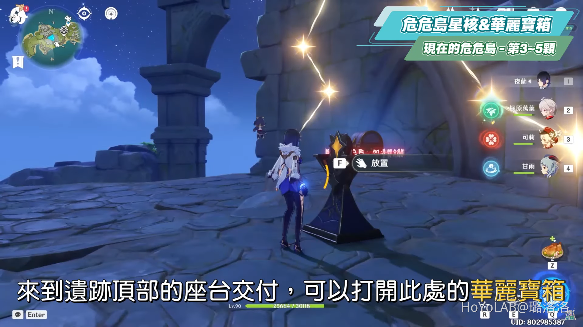 蒐集到5顆星核,再透過水鏡傳到過去的危危島,來到遺跡頂部的座台交付,可以打開此處的華麗寶箱