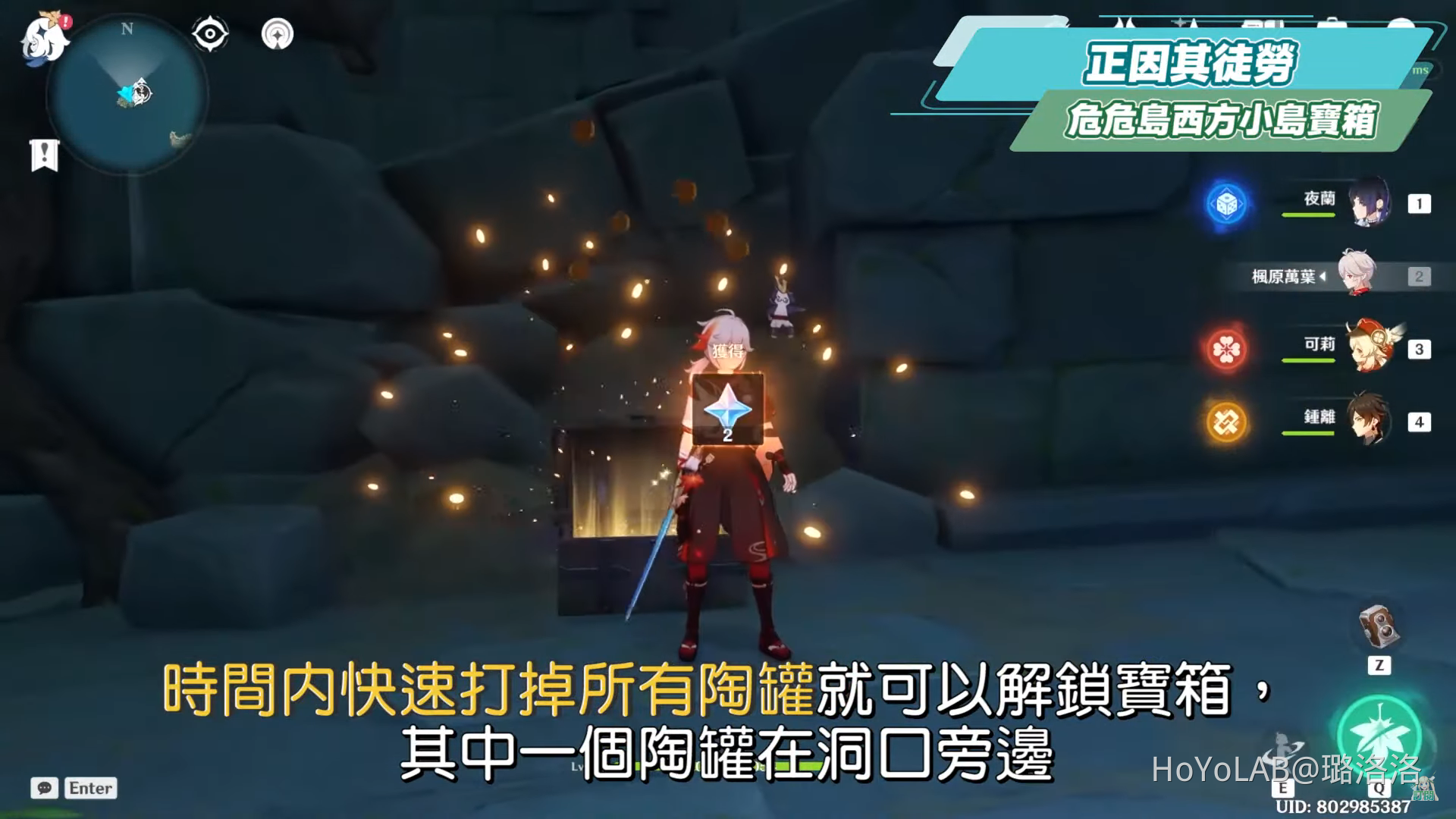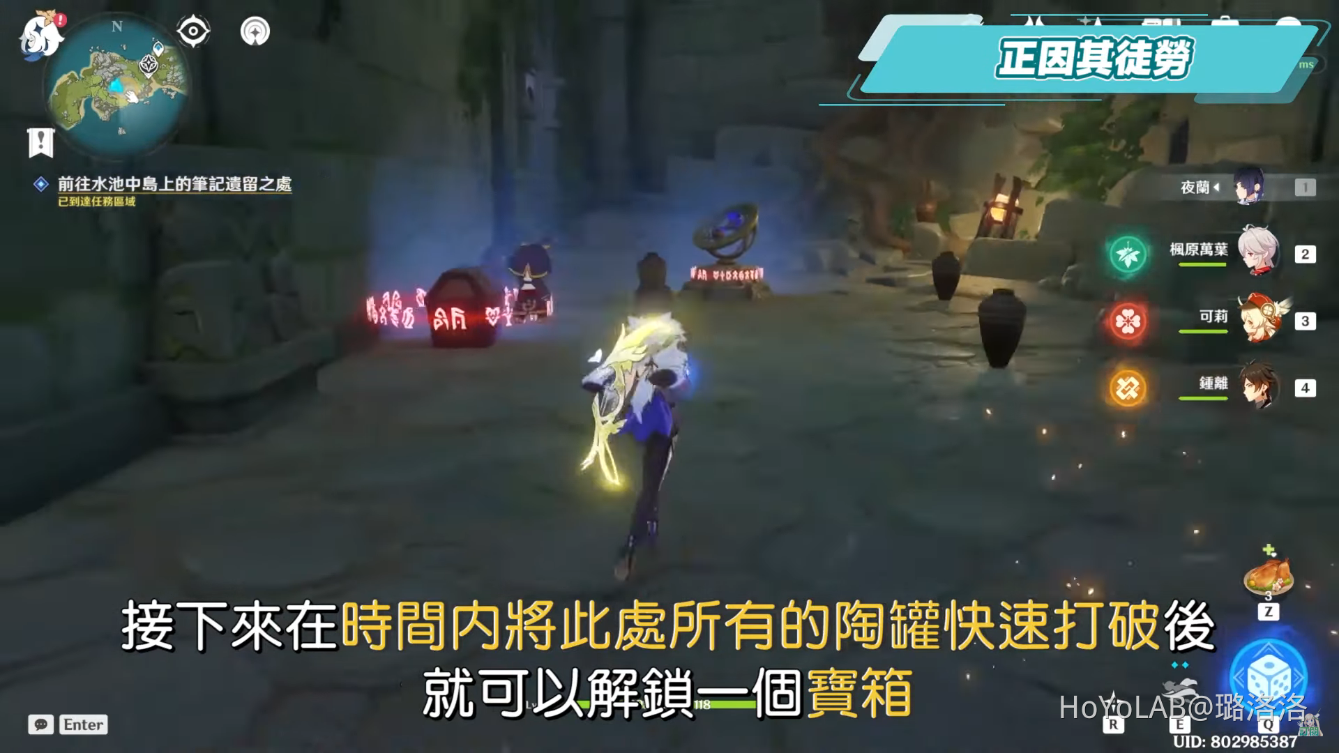 這邊有兩個解謎寶箱也可以順便拿,從水鏡直接下來的寶箱可以在時間內快速打掉所有陶罐就可以解鎖寶箱,其中一個陶罐在洞口旁邊