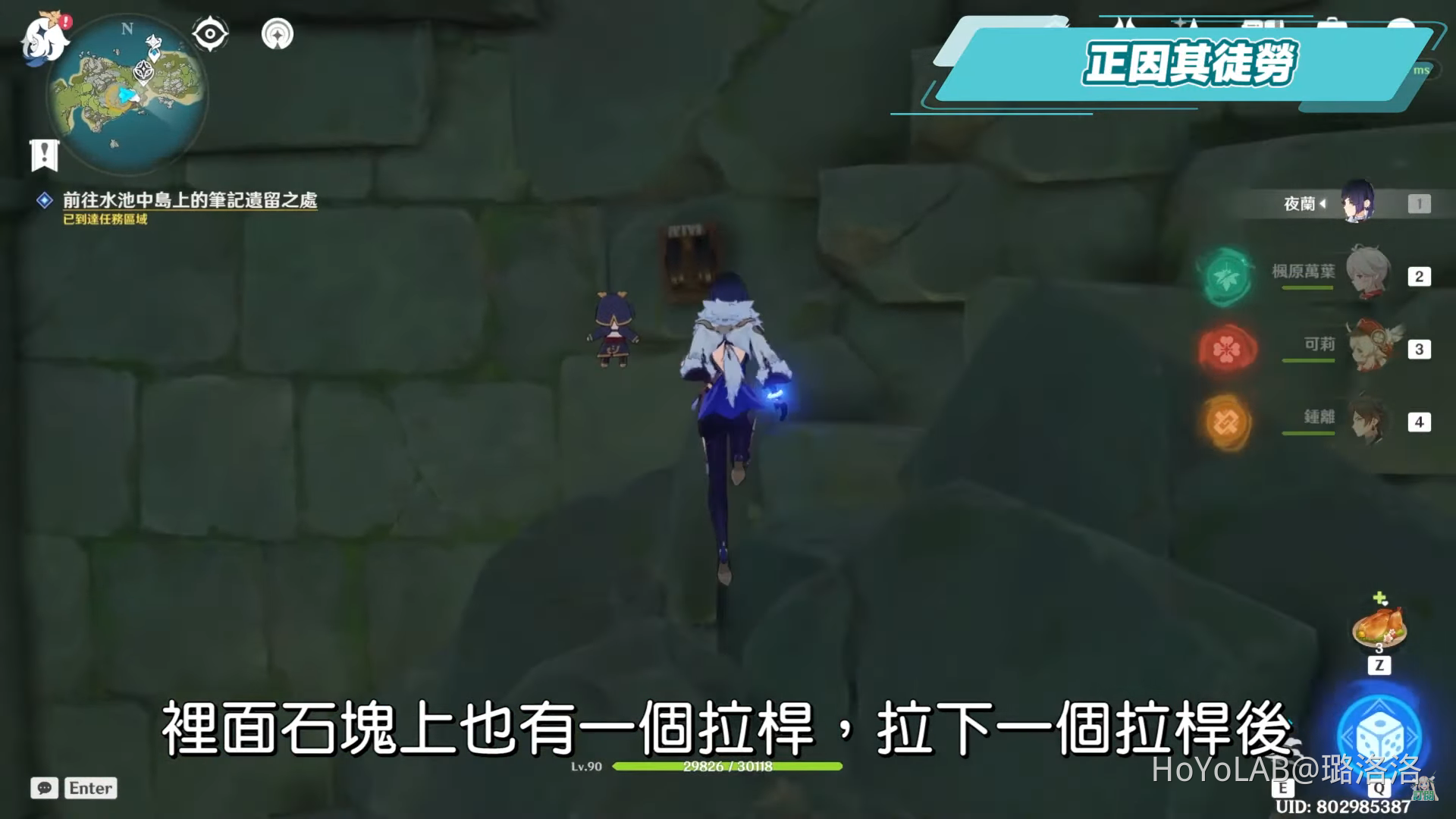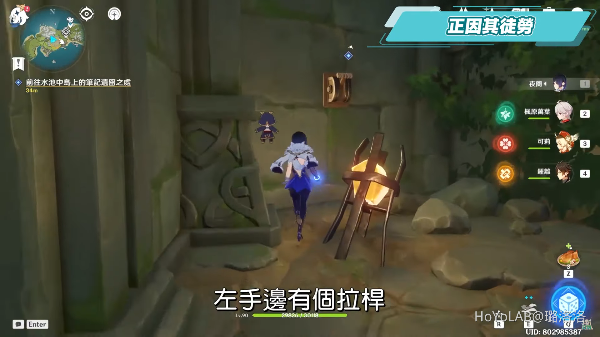 裡面石塊上也有一個拉桿,拉下一個拉桿後,需要在時間內拉下第二個拉桿,再快速爬到二樓