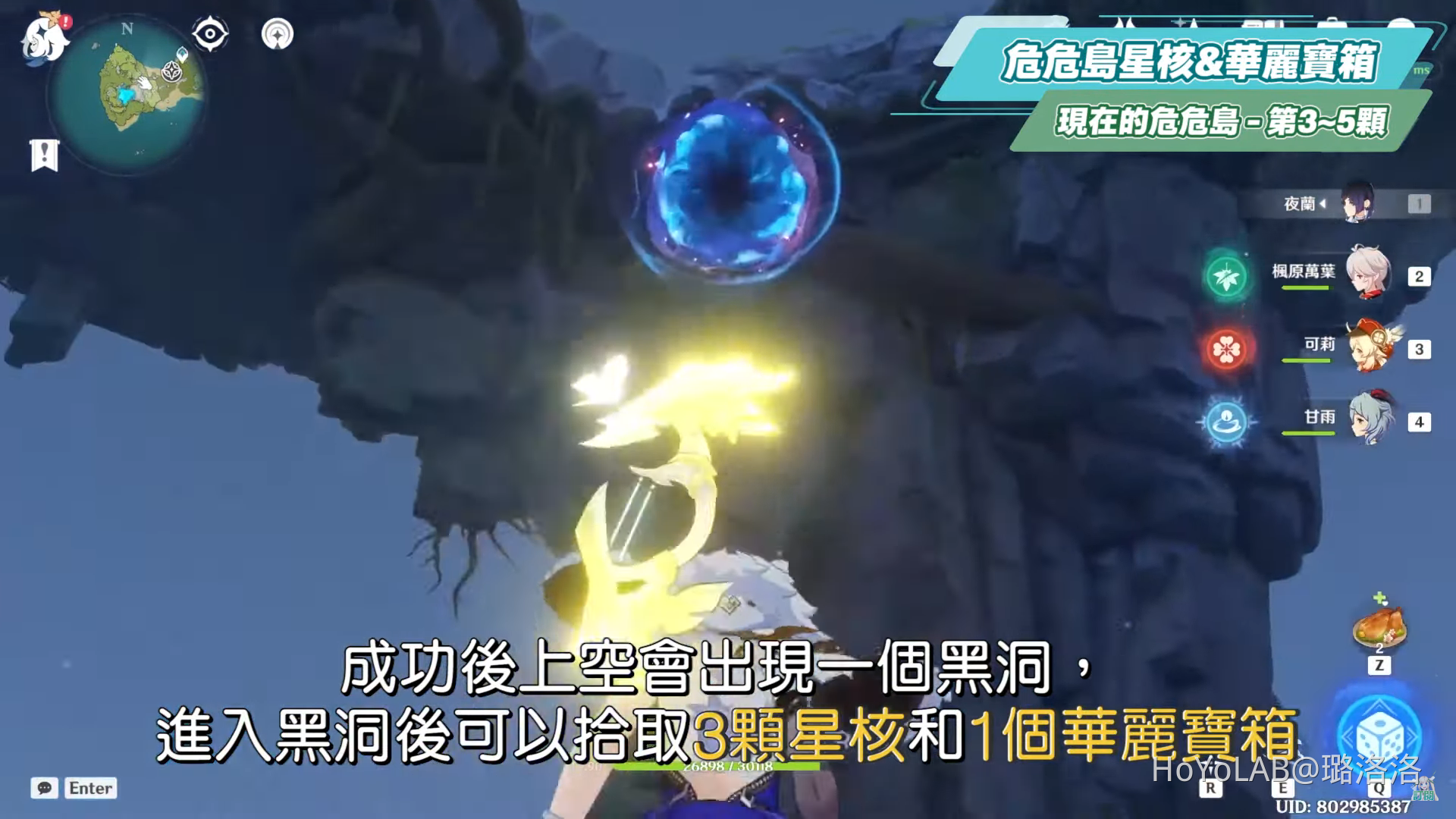成功後上空會出現一個黑洞,進入黑洞後可以拾取3顆星核和1個華麗寶箱