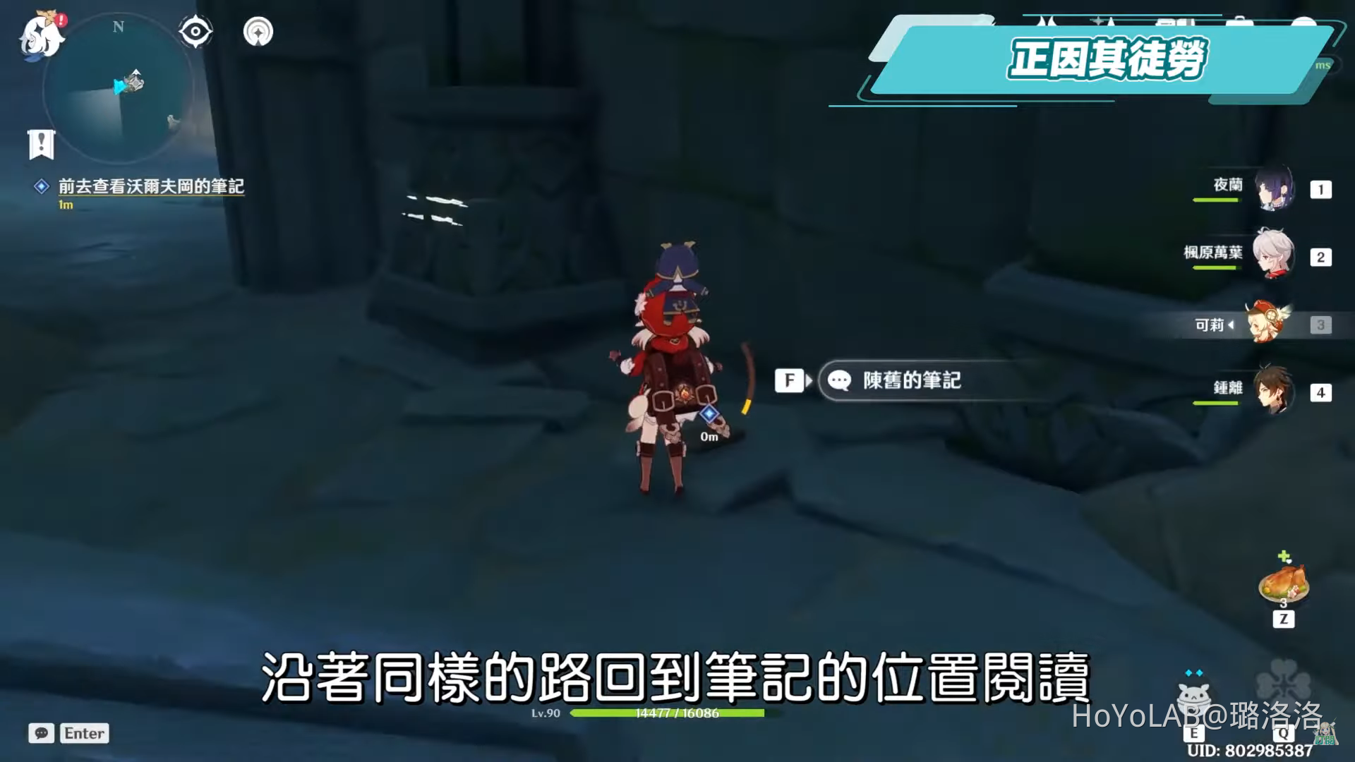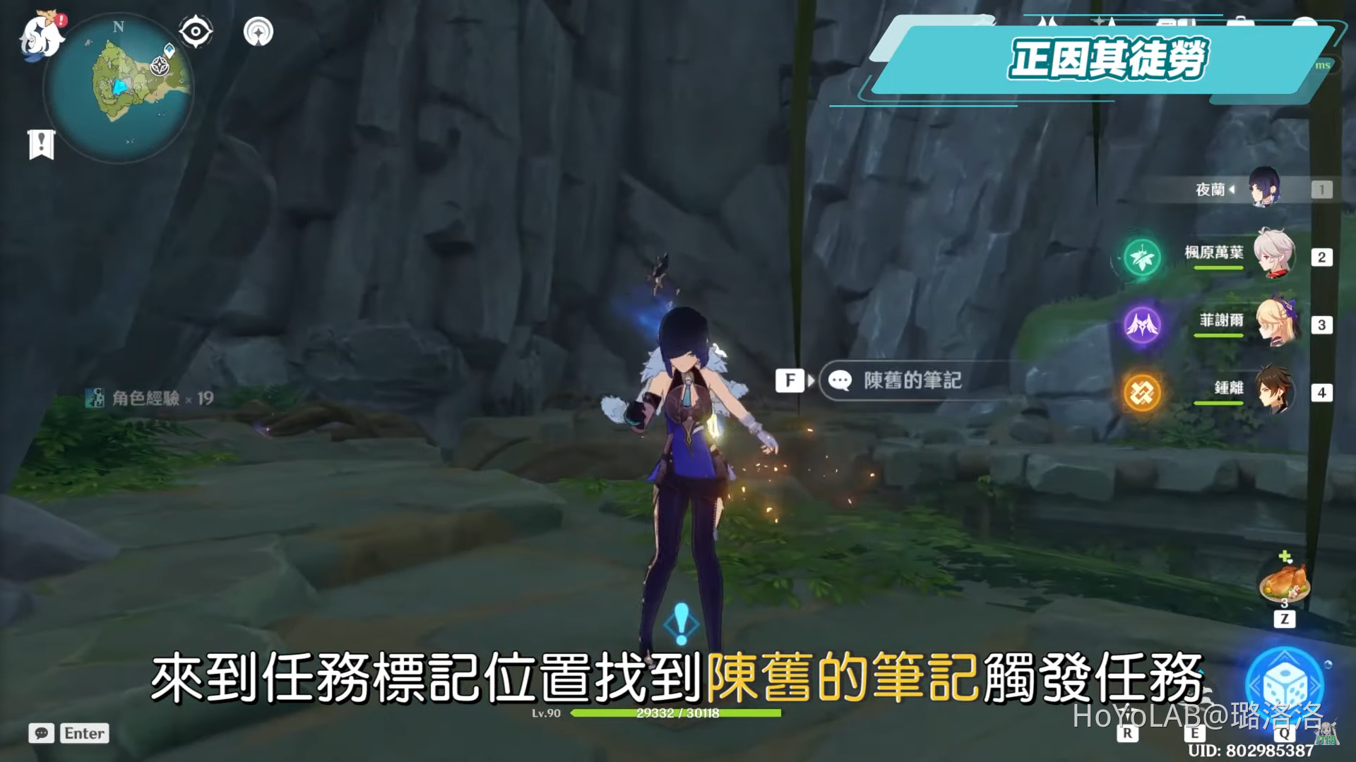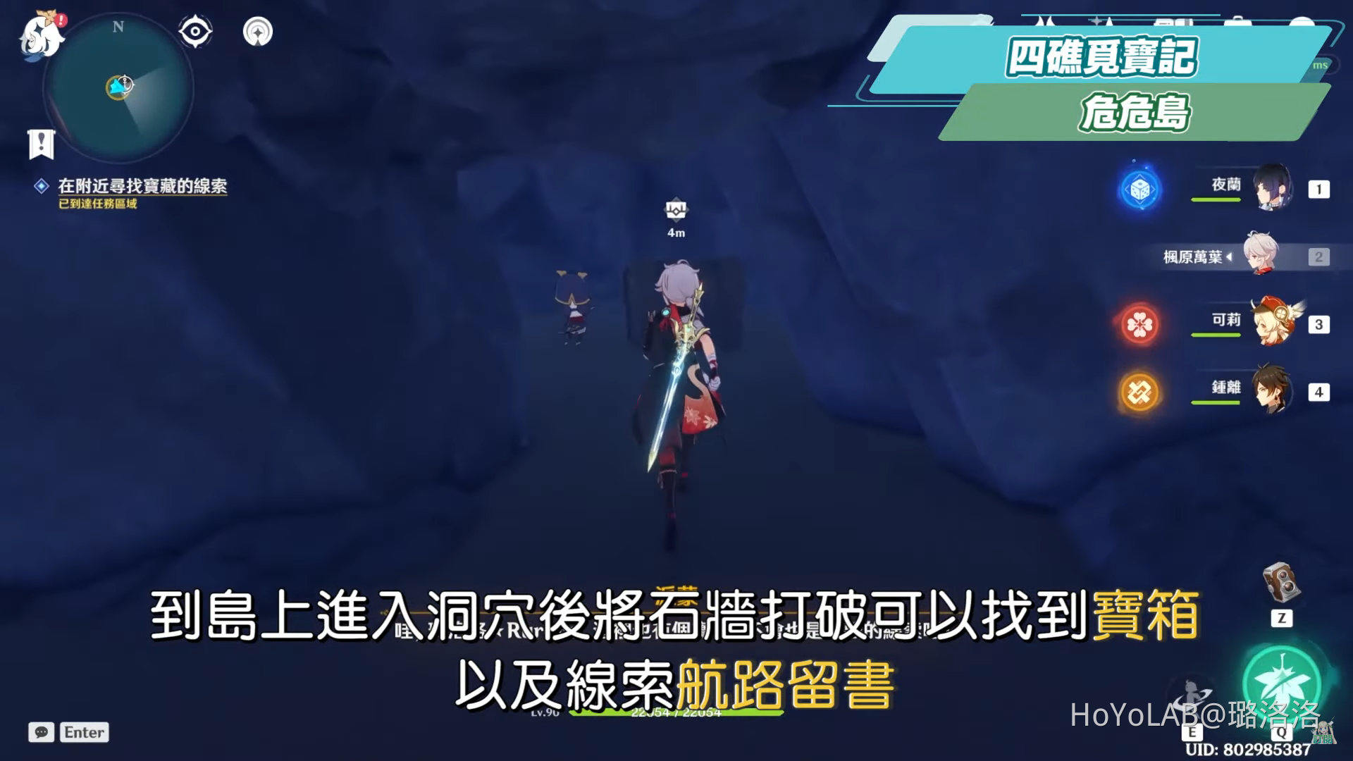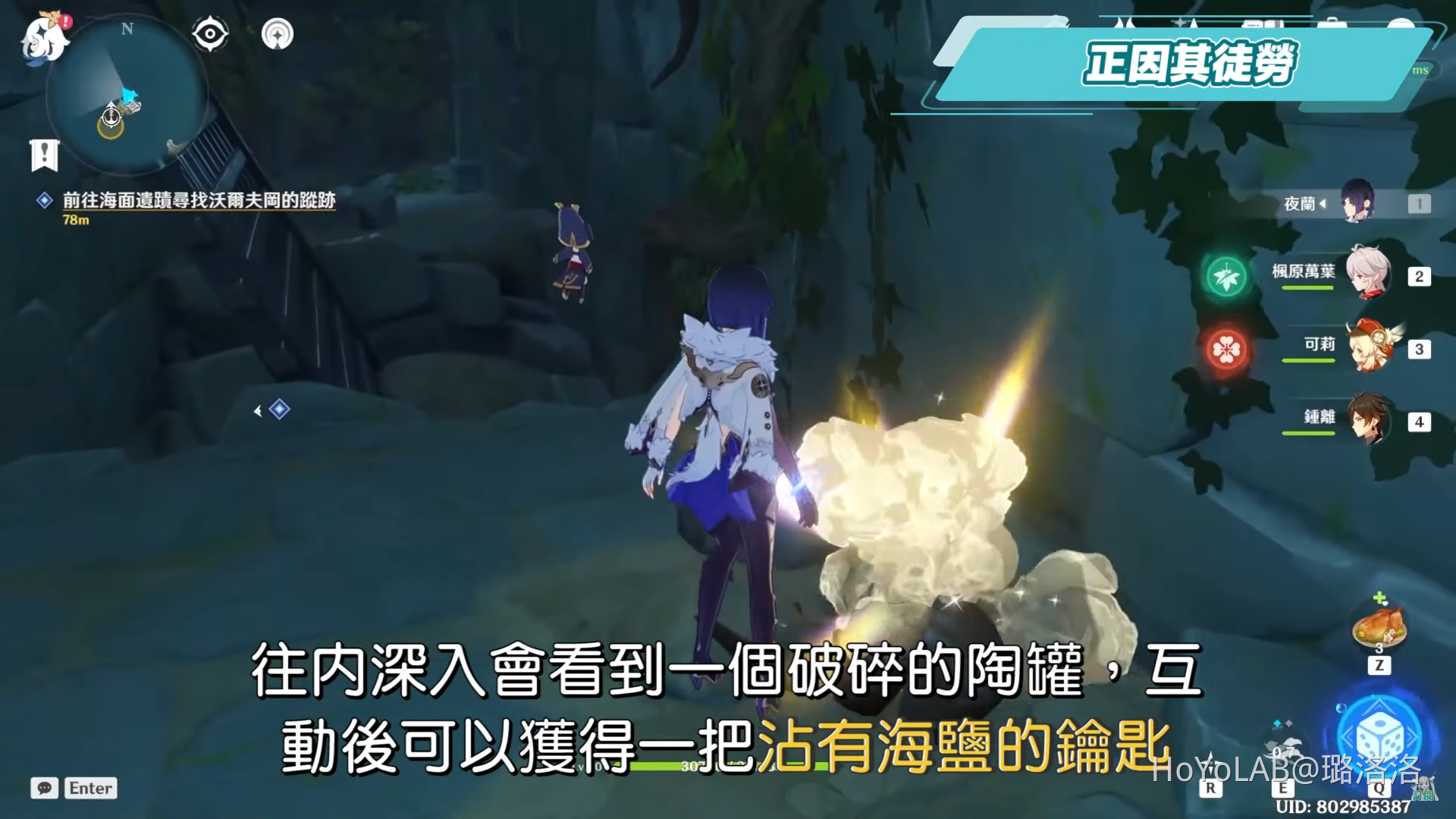 和夜鴉對話後幫他清理洞穴裡面的丘丘人,清理完後找到夜鴉