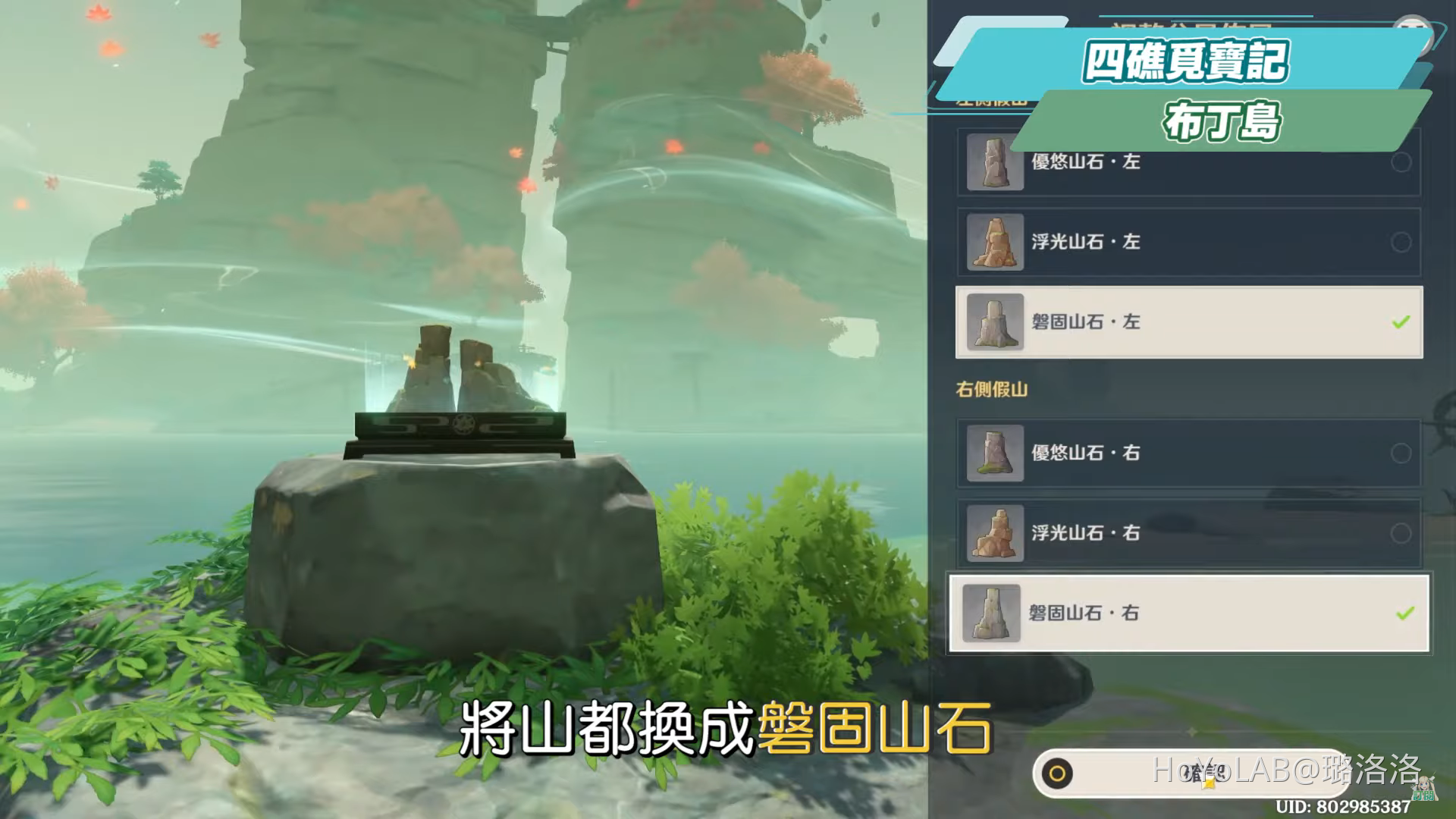 再回到布丁島萬葉幻境入口操作盆景,將山都換成磐固山石
