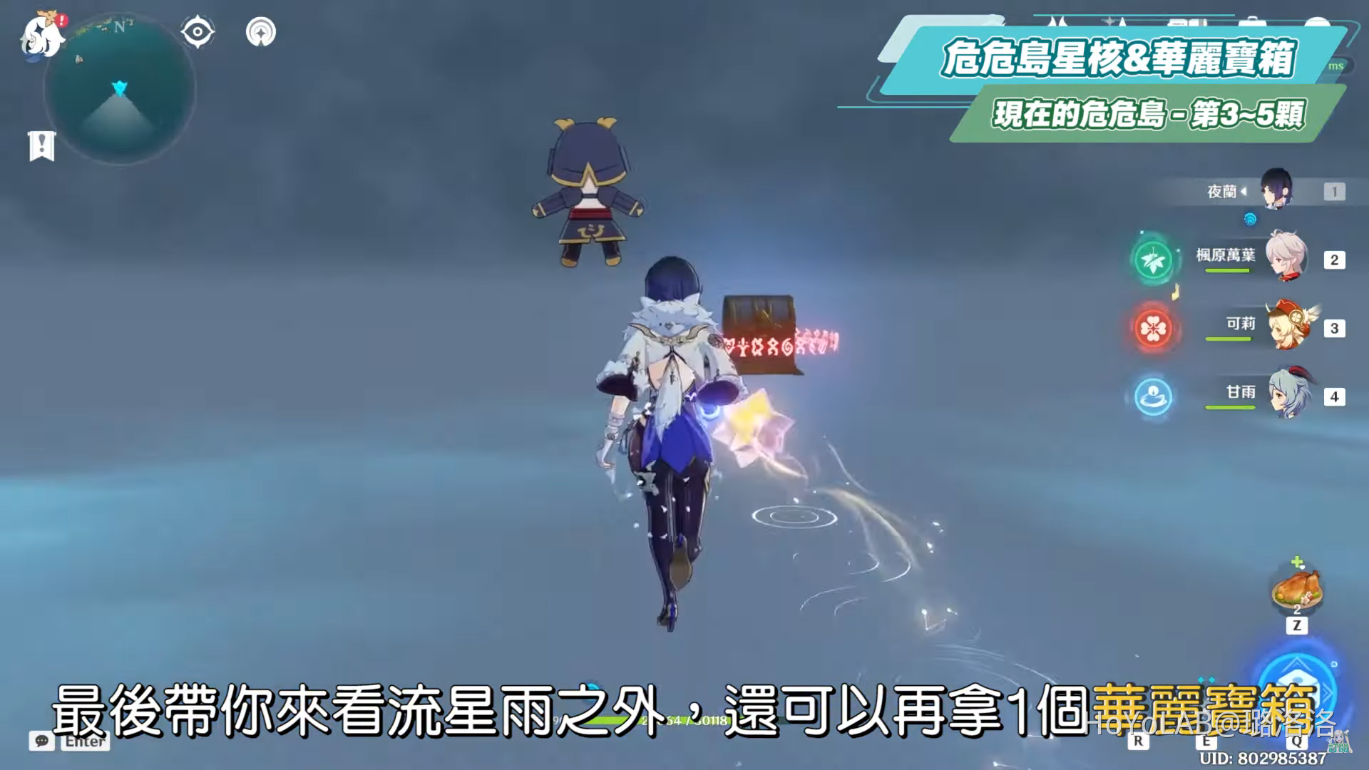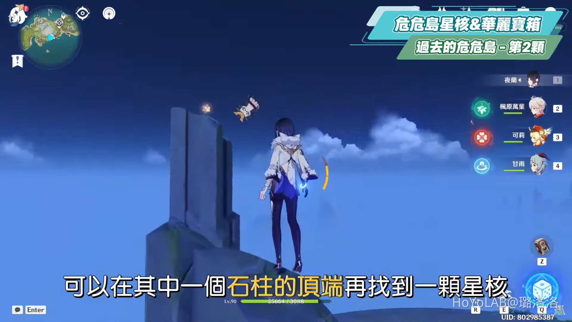 在危危島一共可以蒐集18顆星核,但其實任務只需要用到8顆,多出來10顆不知道是為了讓玩家有更高的容錯率還是怎麼樣,因此洛洛這邊只會提供可以順便拿寶箱的8顆關鍵星核蒐集位置,也因為剛剛正因其徒勞的任務已經拿到3顆,因此只需要再蒐集5顆即可。