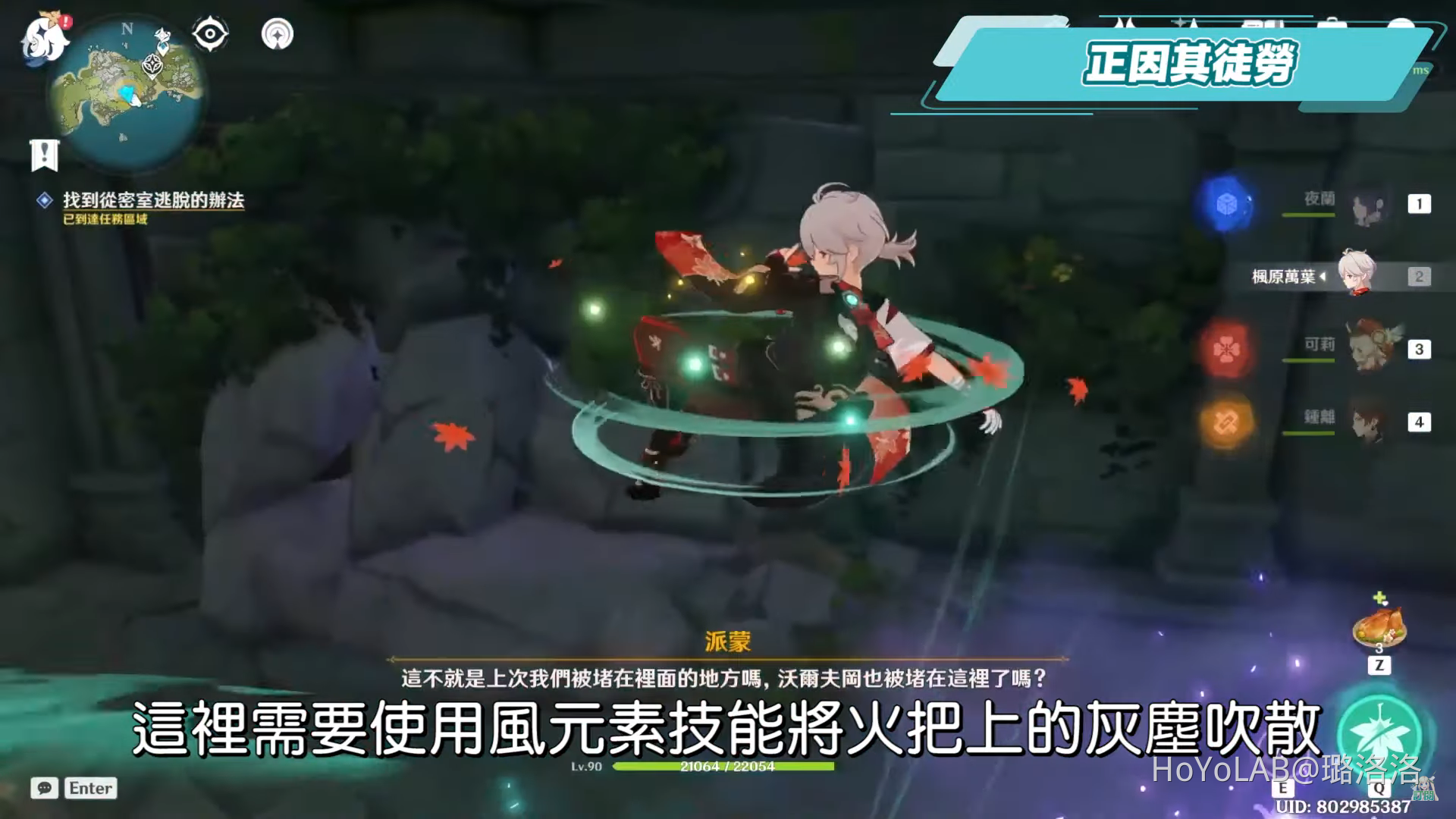 這裡需要使用風元素技能將火把上的灰塵吹散