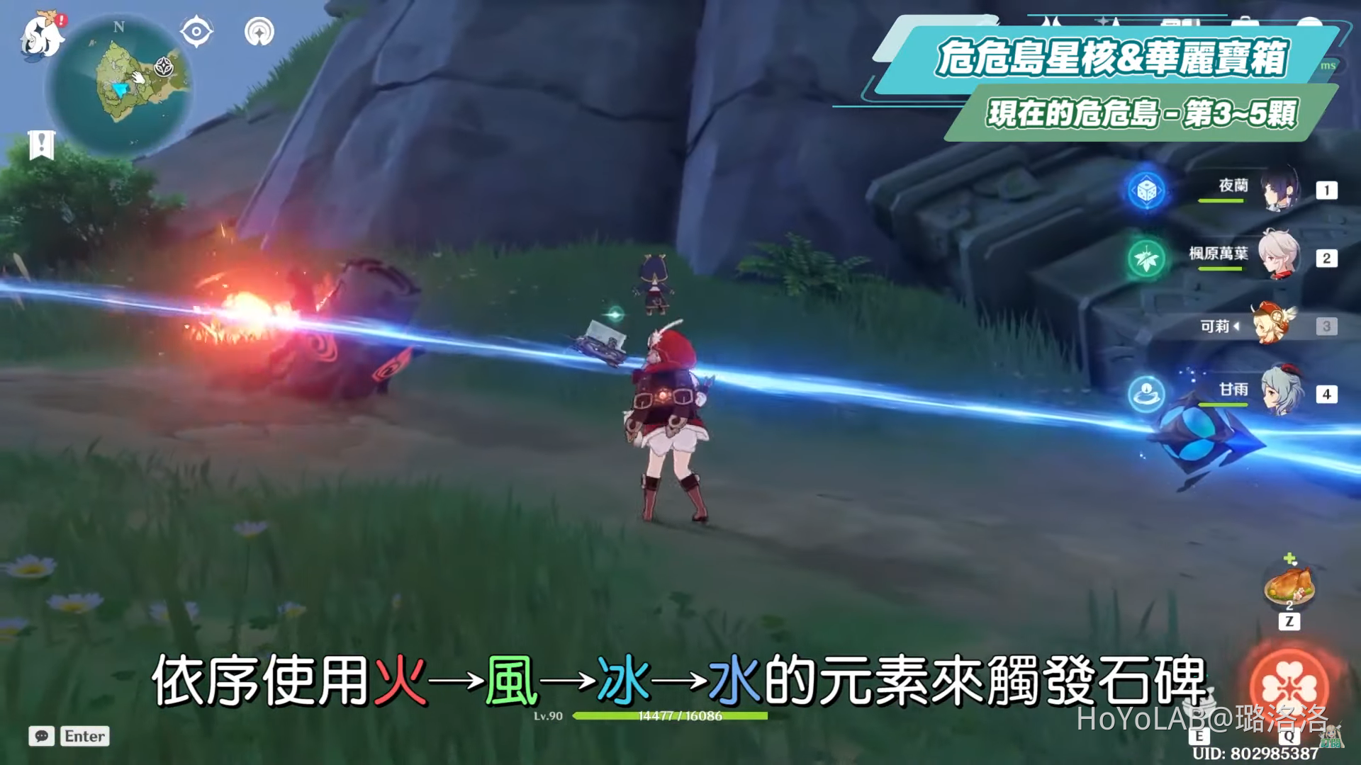 找到水鏡傳到現在的危危島,來到4元素石碑解謎處,依序使用火→風→冰→水的元素來觸發石碑